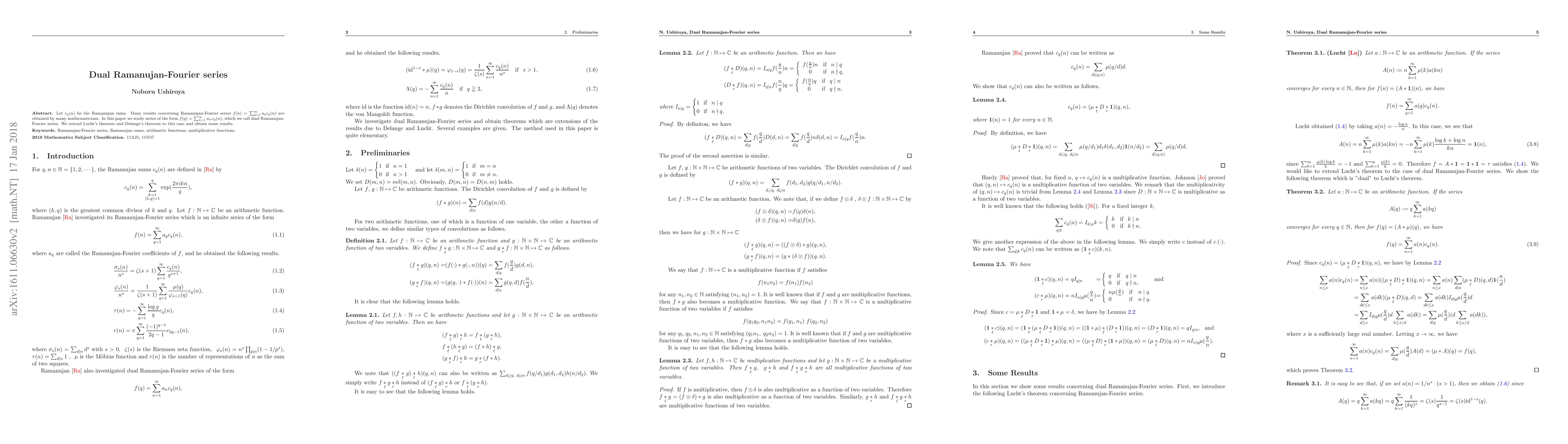 The work introduces and develops the theory of dual Ramanujan-Fourier series, extending known results and providing new formulas and conditions relevant to the study of arithmetic functions.
