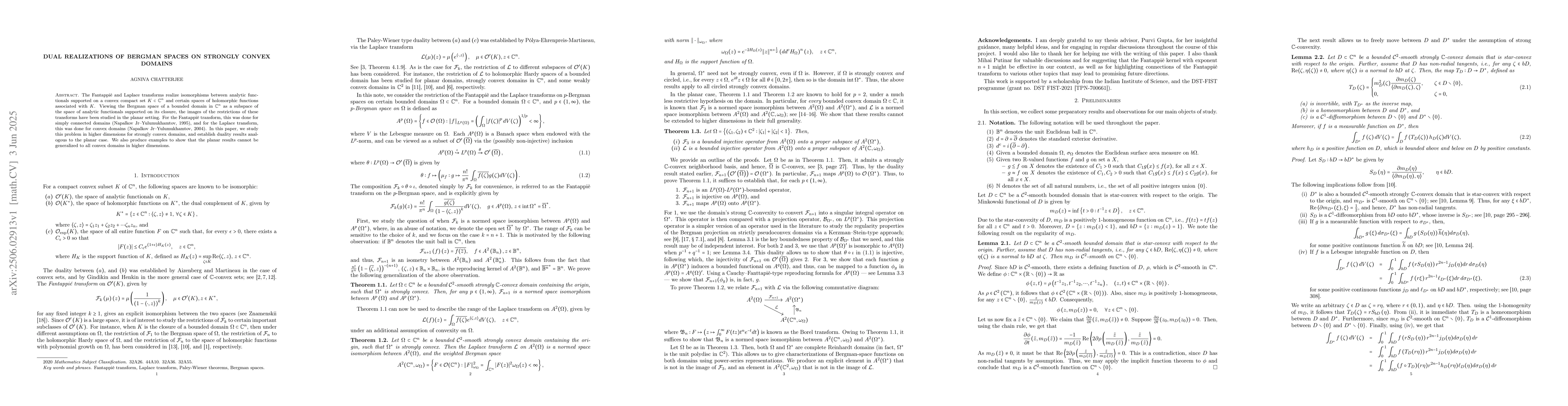 The paper presents novel duality results for Bergman spaces on strongly convex domains using Fantappiè and Laplace transforms, extending known planar results to higher dimensions.
