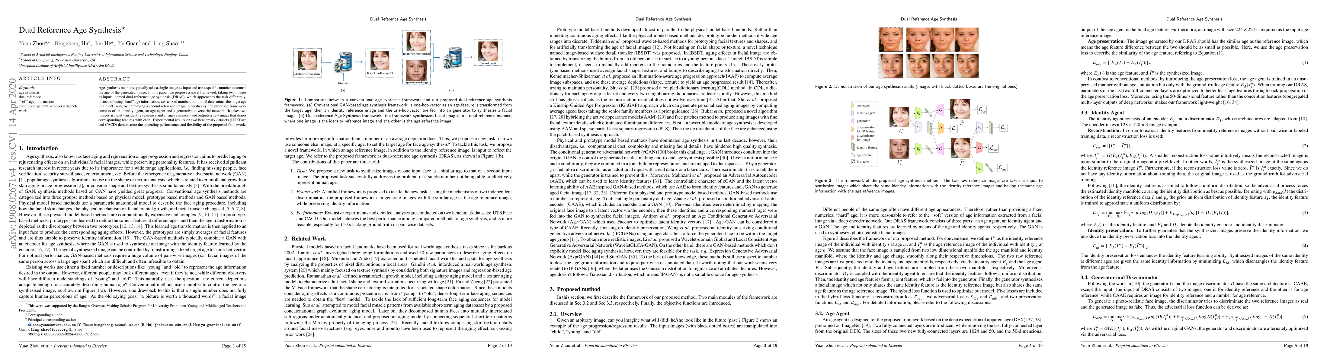 Researchers propose a novel age synthesis framework called dual-reference age synthesis (DRAS) that uses two images to generate new images with varying ages in a 'soft' way, rather than relying on fixed age numbers.