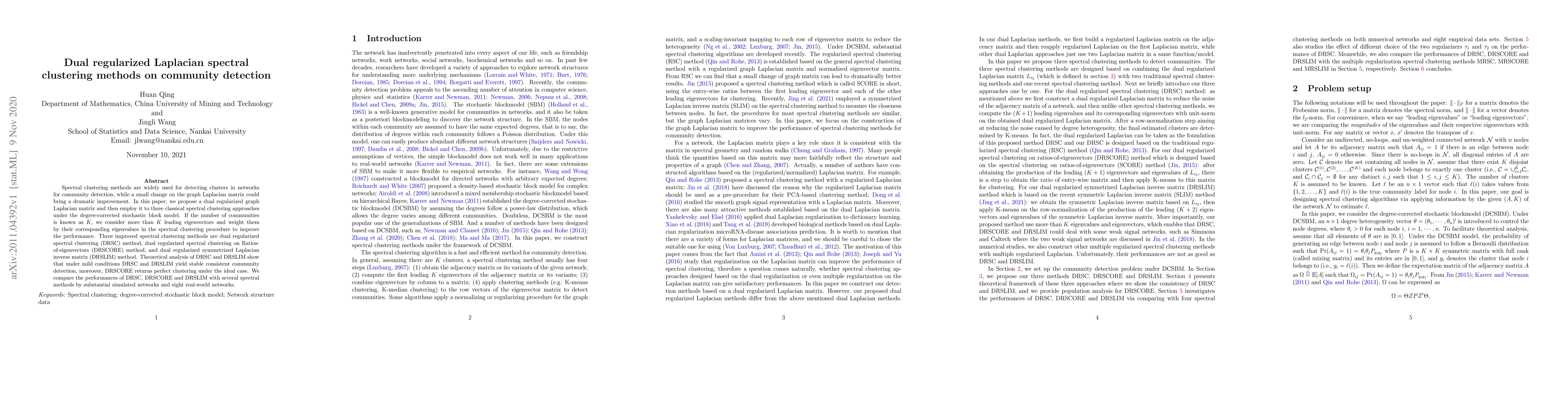 This paper proposes three dual regularized Laplacian spectral clustering methods for community detection, showing improved performance through theoretical analysis and empirical comparisons with other spectral clustering methods on both simulated and real-world networks.