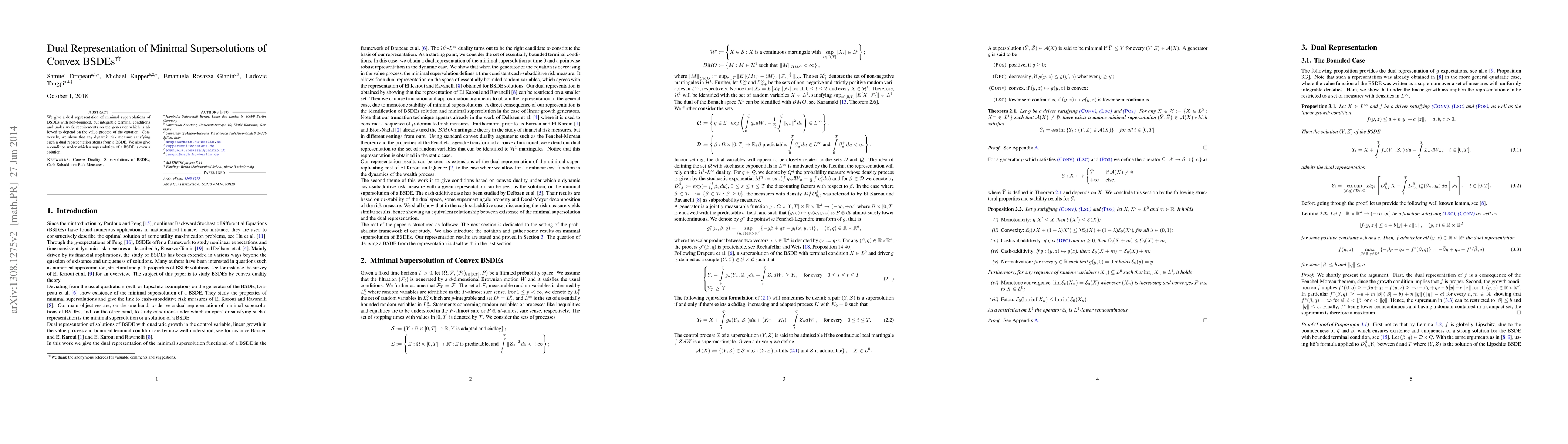 This paper establishes a dual representation for minimal supersolutions of convex BSDEs under weak requirements on the generator, showing that dynamic risk measures can be derived from these equations. It also provides conditions for supersolutions to be solutions.