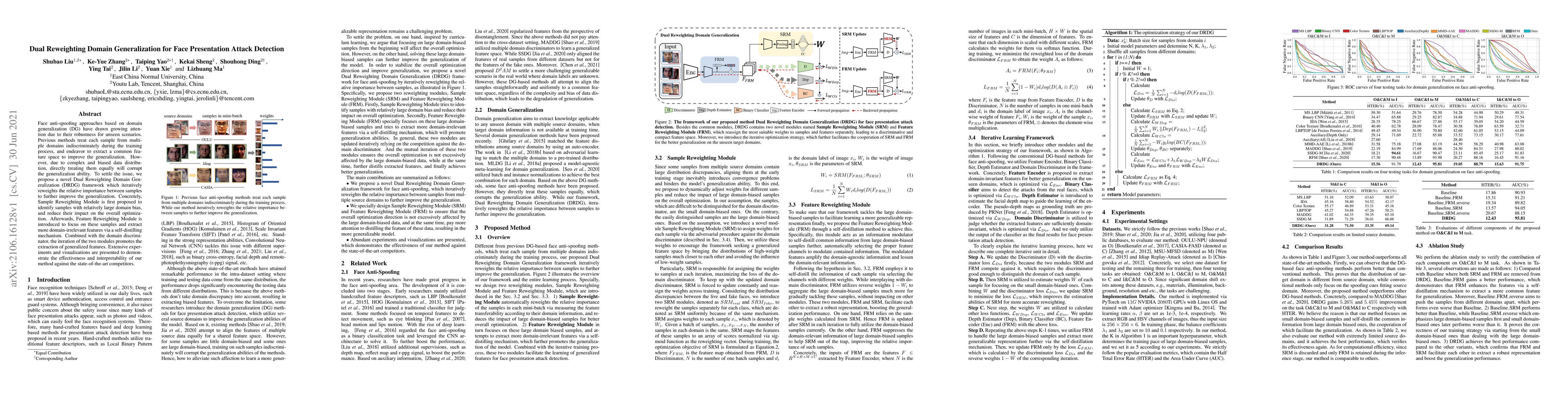 A new framework called Dual Reweighting Domain Generalization improves face anti-spoofing detection by iteratively reweighting the importance of samples from different domains to extract more generalizable features.