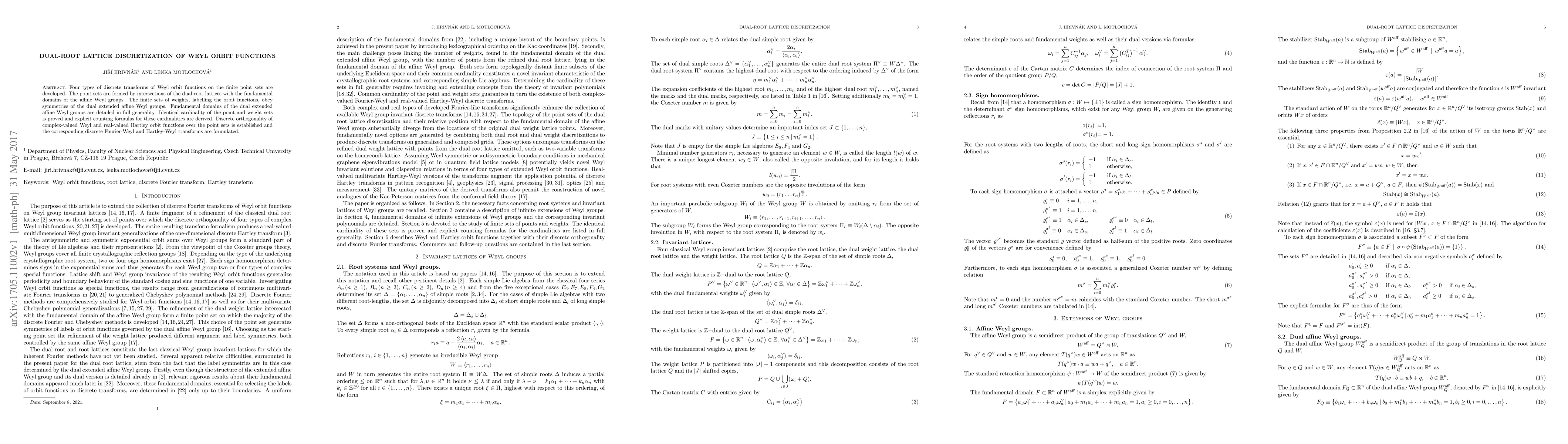 Four types of discrete transforms of Weyl orbit functions on the finite point sets are developed. The point sets are formed by intersections of the dual-root lattices with the fundamental domains of the affine Weyl groups. The finite sets of weights, labelling the orbit functions, obey symmetries of the dual extended affine Weyl groups. Fundamental domains of the dual extended affine Weyl groups are detailed in full generality. Identical cardinality of the point and weight sets is proved and explicit counting formulas for these cardinalities are derived. Discrete orthogonality of complex-valued Weyl and real-valued Hartley orbit functions over the point sets is established and the corresponding discrete Fourier-Weyl and Hartley-Weyl transforms are formulated.