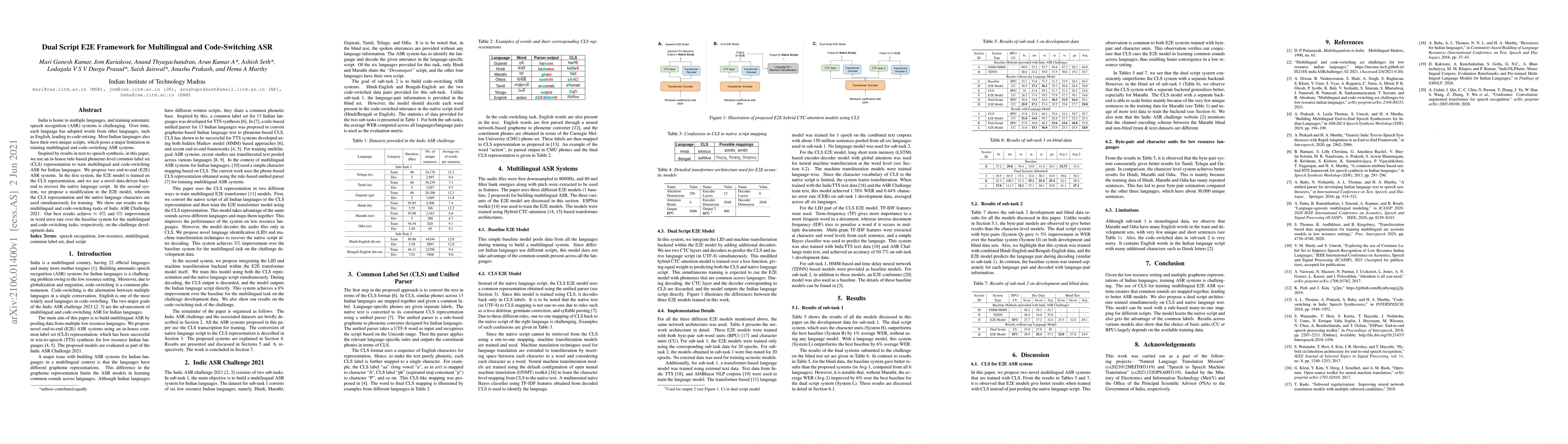 This paper proposes two end-to-end ASR frameworks for multilingual and code-switching in Indian languages, utilizing a common label set for phoneme representation and native scripts. The best model shows a 6% and 5% improvement in word error rate for multilingual and code-switching tasks, respectively.