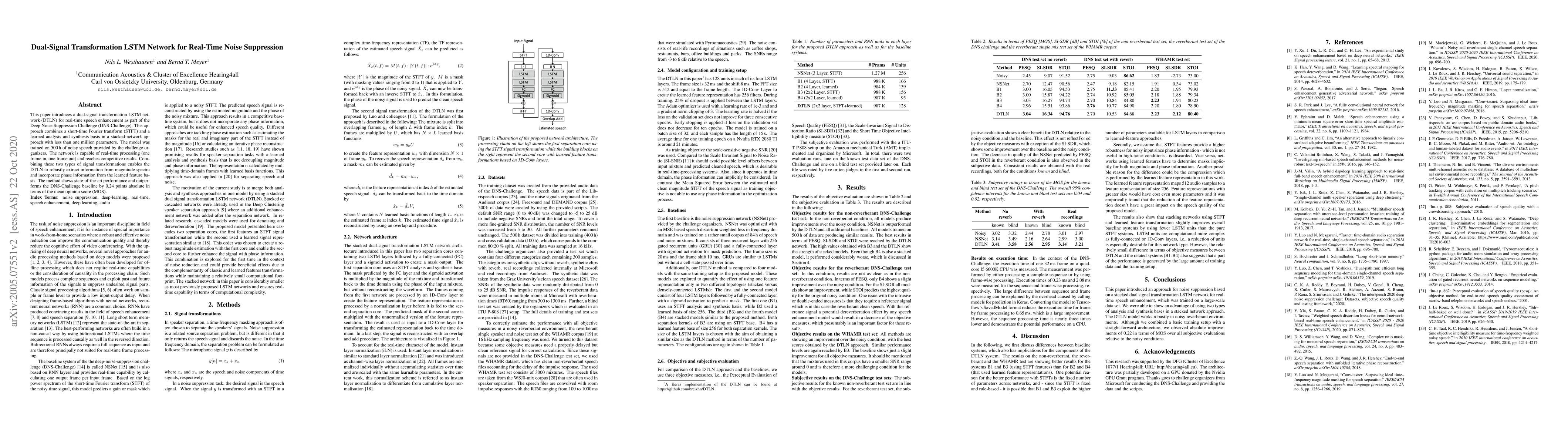 This paper proposes a dual-signal transformation LSTM network (DTLN) for real-time speech enhancement, combining STFT and learned basis for robust feature extraction. The DTLN achieves state-of-the-art performance, outperforming the DNS-Challenge baseline by 0.24 points in mean opinion score.