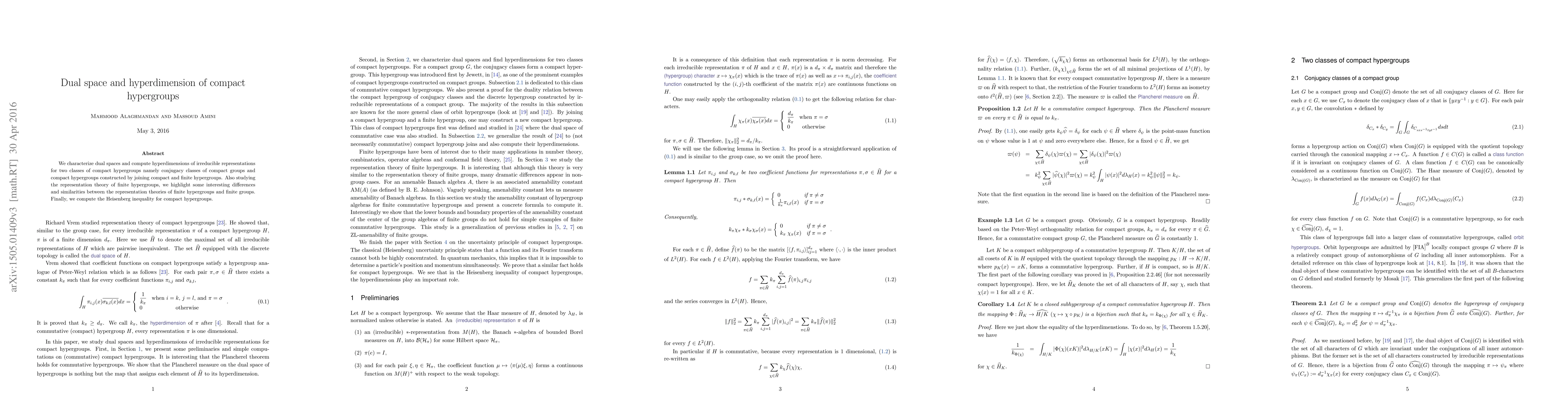 This paper characterizes dual spaces and computes hyperdimensions for irreducible representations of conjugacy classes of compact groups and combined compact-finite hypergroups. It also compares representation theories between finite hypergroups and groups, and derives the Heisenberg inequality for compact hypergroups.