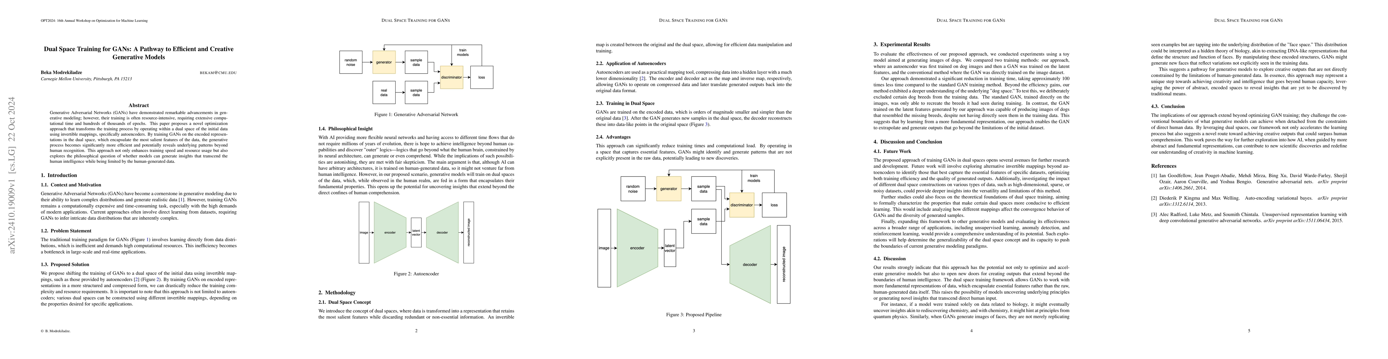 This paper introduces a dual space training method for GANs using autoencoders to encode salient data features, making the training process more efficient and potentially uncovering deeper patterns. This innovative approach raises questions about whether machine-generated insights can surpass human intelligence constraints.