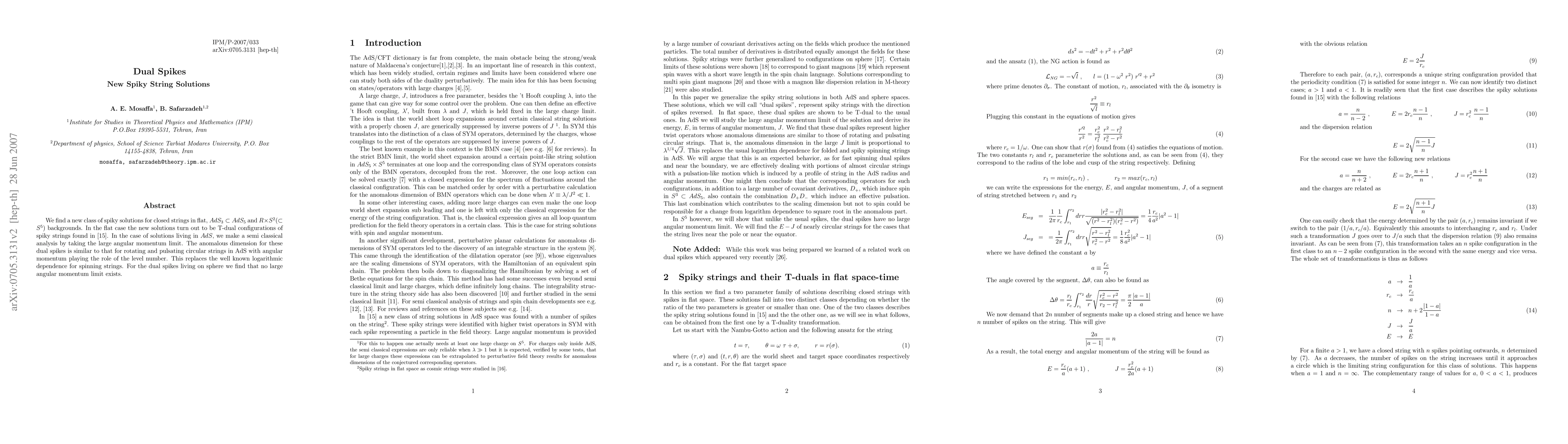 Researchers discover new spiky string solutions in flat and AdS backgrounds, finding dual spikes with anomalous dimensions similar to rotating circular strings.