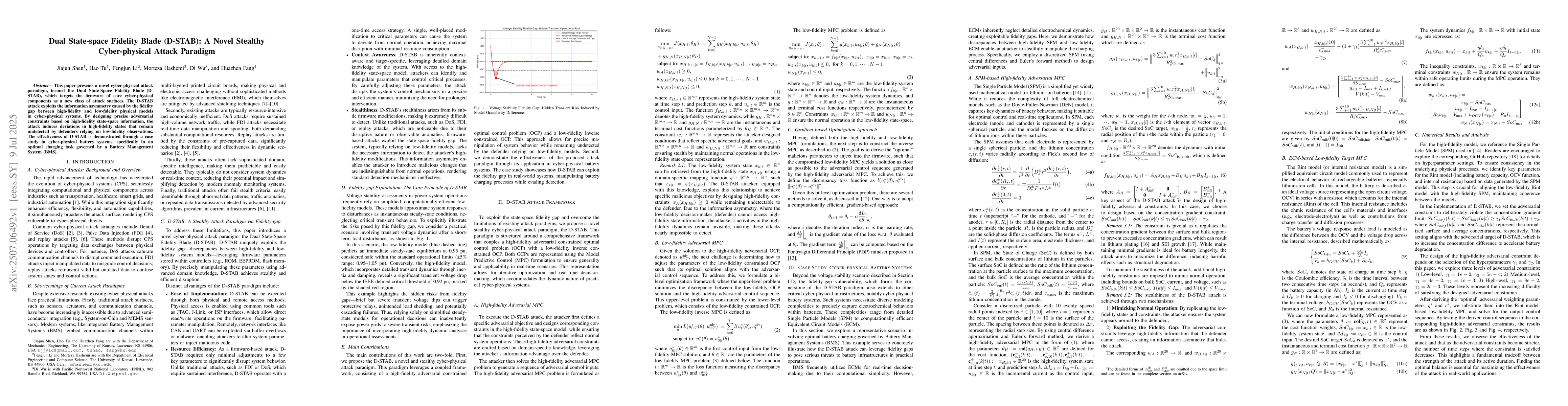This paper presents a novel cyber-physical attack paradigm, termed the Dual State-Space Fidelity Blade (D-STAB), which targets the firmware of core cyber-physical components as a new class of attack surfaces. The D-STAB attack exploits the information asymmetry caused by the fidelity gap between high-fidelity and low-fidelity physical models in cyber-physical systems. By designing precise adversarial constraints based on high-fidelity state-space information, the attack induces deviations in high-fidelity states that remain undetected by defenders relying on low-fidelity observations. The effectiveness of D-STAB is demonstrated through a case study in cyber-physical battery systems, specifically in an optimal charging task governed by a Battery Management System (BMS).