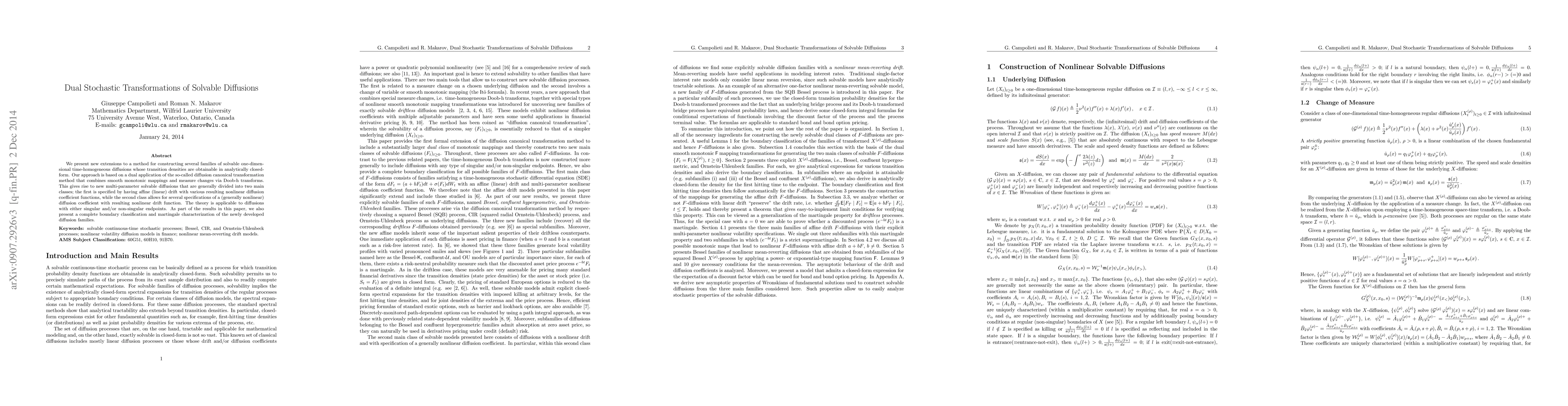 This paper introduces a dual stochastic transformation method for constructing analytically solvable one-dimensional diffusions, categorized into two classes based on drift and diffusion coefficients. The method employs diffusion canonical transformations and Doob-h transforms, providing a comprehensive boundary classification and martingale characterization.