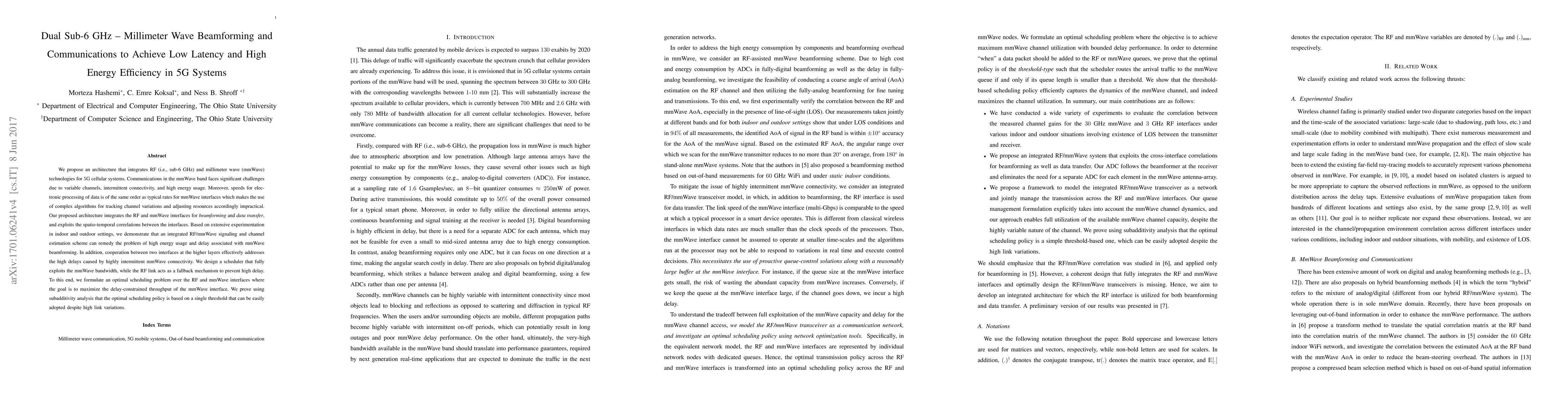 This paper proposes a hybrid RF and mmWave architecture for 5G systems to achieve low latency and high energy efficiency. The integrated approach addresses mmWave's challenges by using RF as a fallback, optimizing scheduling to maximize throughput while minimizing delays.