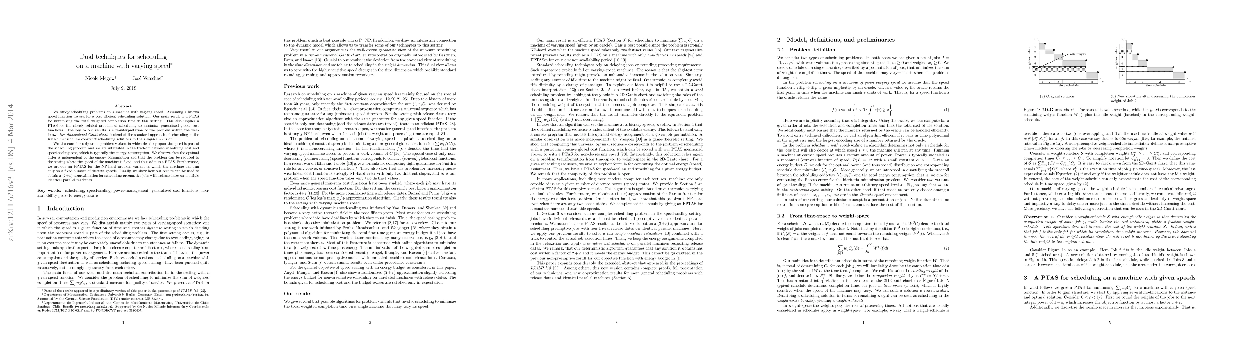 This paper presents dual techniques for scheduling on a machine with varying speed, achieving a PTAS for minimizing total weighted completion time and generalized global cost functions by reinterpreting the problem in the weight-dimension. It also addresses a dynamic variant considering energy consumption, showing the optimal job order is independent of it, and provides an FPTAS for a fixed discrete speeds variant.