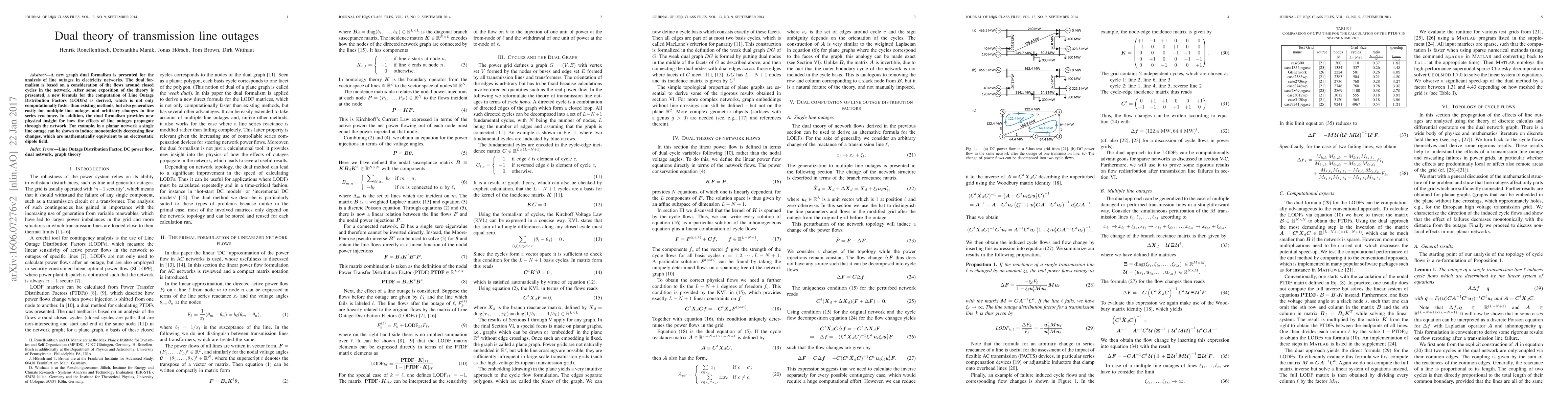 A new graph dual formalism is presented for analyzing line outages in electricity networks, offering a faster and more generalizable method for computing Line Outage Distribution Factors and providing new physical insights into how outages propagate through the network.