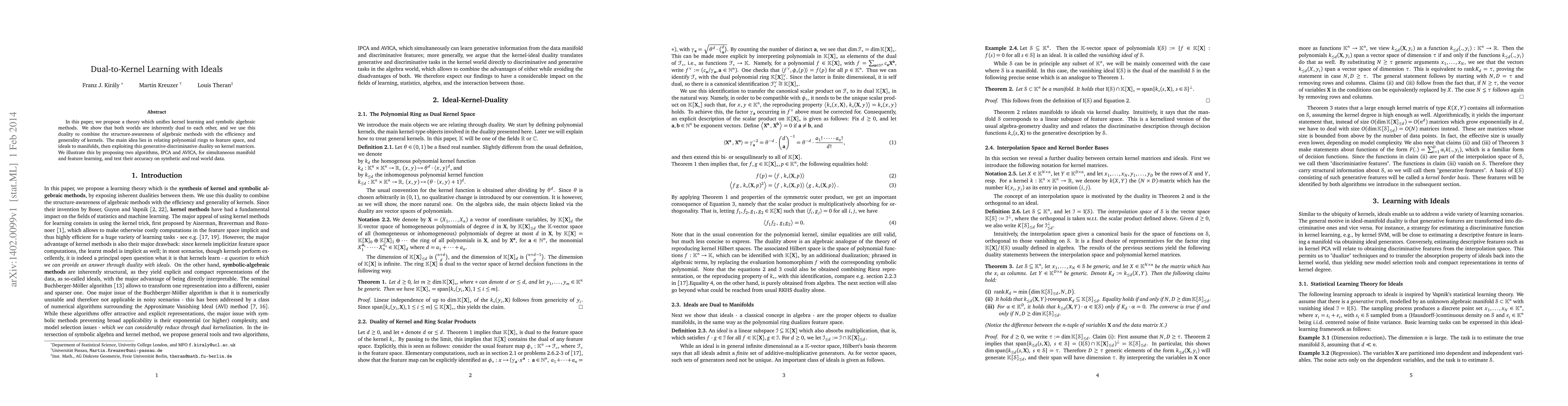 Researchers propose a new theory that combines kernel learning with symbolic algebraic methods, achieving efficiency and generality through dualistic duality between polynomial rings and feature space, and manifolds and ideals.
