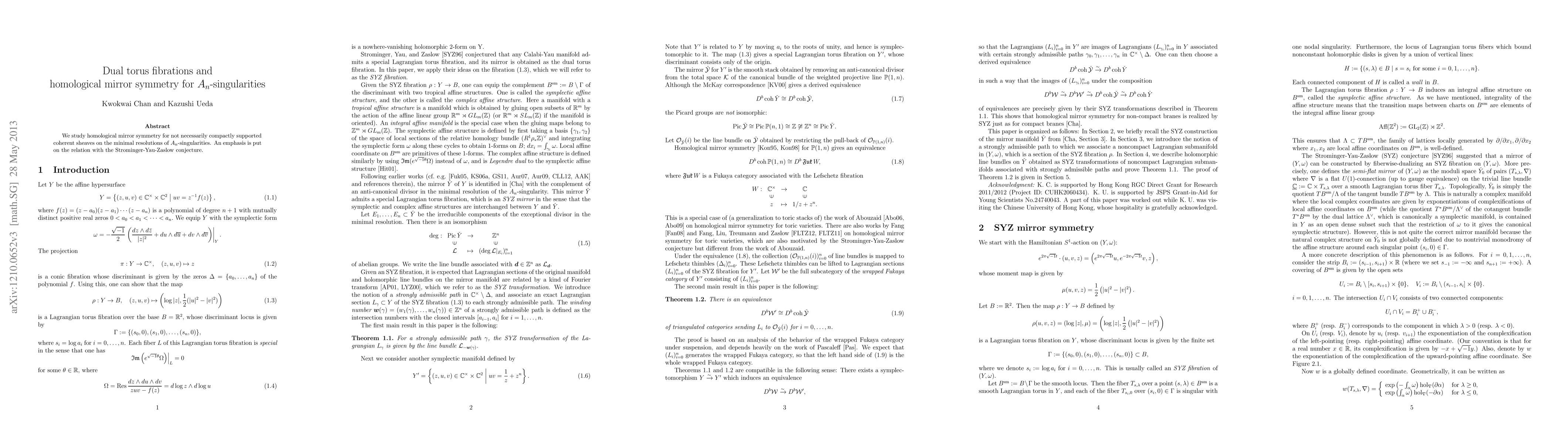 This paper investigates homological mirror symmetry for coherent sheaves on minimal resolutions of A_n-singularities, focusing on their relation to the Strominger-Yau-Zaslow conjecture. It explores dual torus fibrations in this context to understand the underlying geometry.