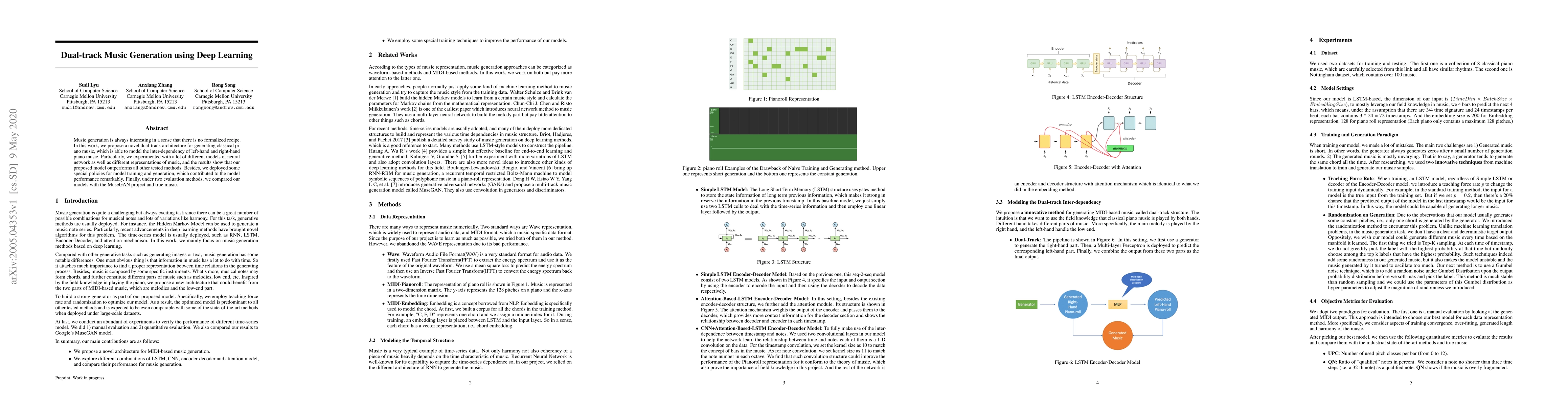 Music generation is always interesting in a sense that there is no formalized recipe. In this work, we propose a novel dual-track architecture for generating classical piano music, which is able to model the inter-dependency of left-hand and right-hand piano music. Particularly, we experimented with a lot of different models of neural network as well as different representations of music, and the results show that our proposed model outperforms all other tested methods. Besides, we deployed some special policies for model training and generation, which contributed to the model performance remarkably. Finally, under two evaluation methods, we compared our models with the MuseGAN project and true music.