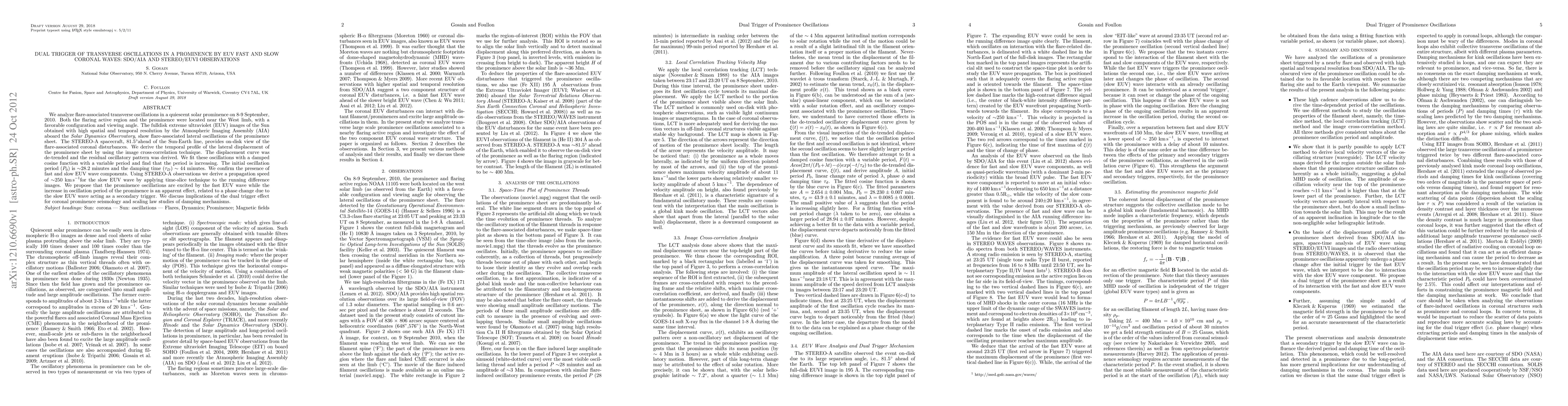 This study investigates transverse oscillations in a solar prominence triggered by fast and slow EUV waves during a flare event on 8-9 September 2010, using data from SDO/AIA and STEREO/EUVI. The oscillations are primarily excited by the fast wave, while the slow wave induces a phase change, increasing the oscillation period.
