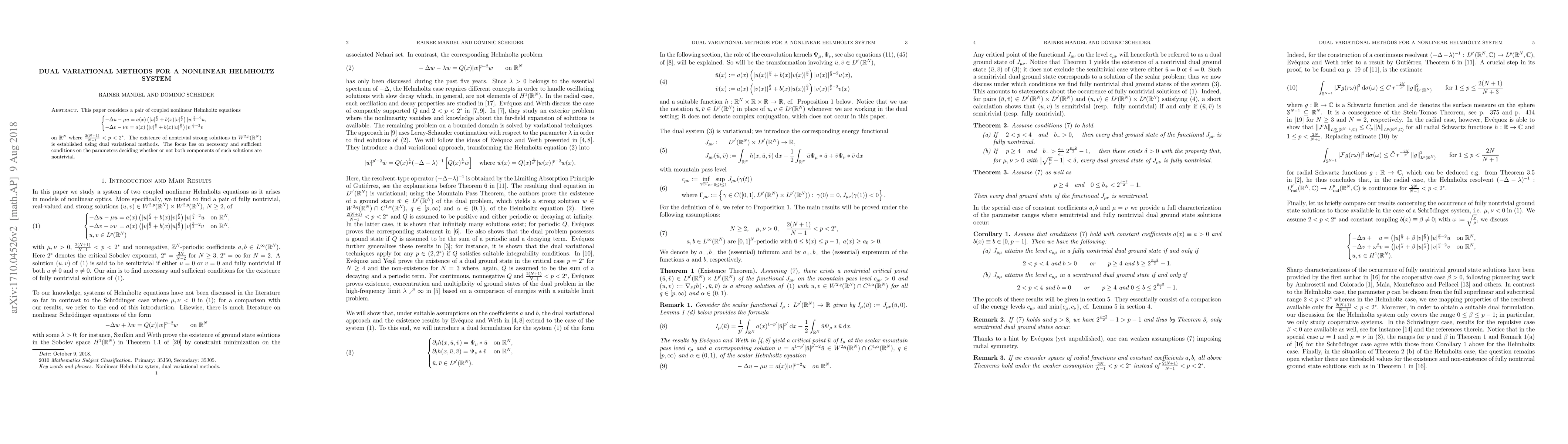 This paper establishes the existence of nontrivial strong solutions for a pair of coupled nonlinear Helmholtz equations using dual variational methods, focusing on conditions that ensure both components of the solutions are nontrivial.