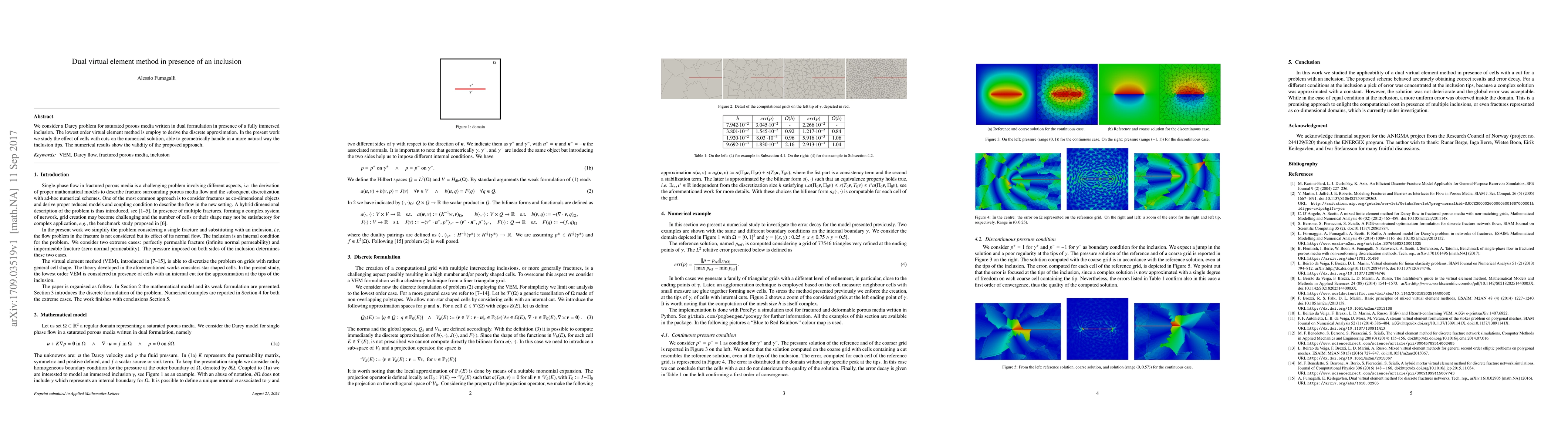 This paper investigates a dual virtual element method for solving Darcy's problem in saturated porous media with an inclusion, focusing on the impact of cut cells on numerical accuracy. The results demonstrate the effectiveness of the method in handling complex geometries.