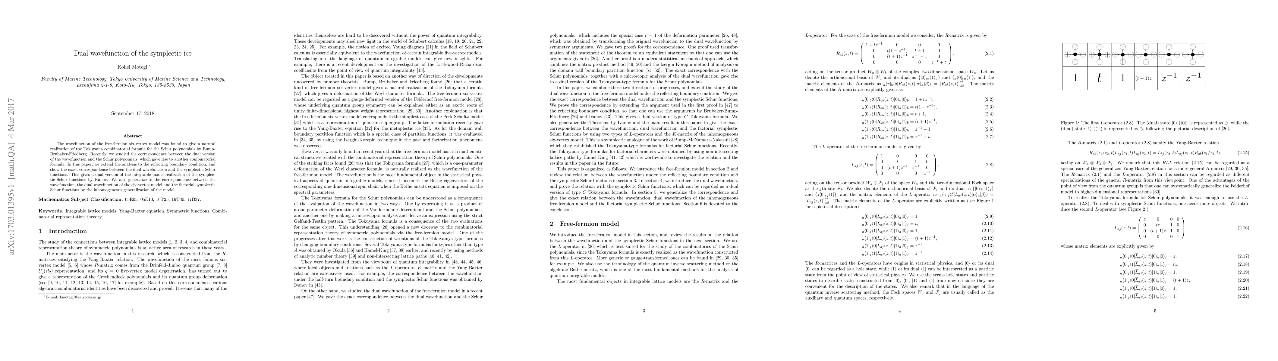 Researchers discovered a dual wavefunction correspondence between the symplectic ice model and the symplectic Schur functions, extending previous findings to the reflecting boundary condition.