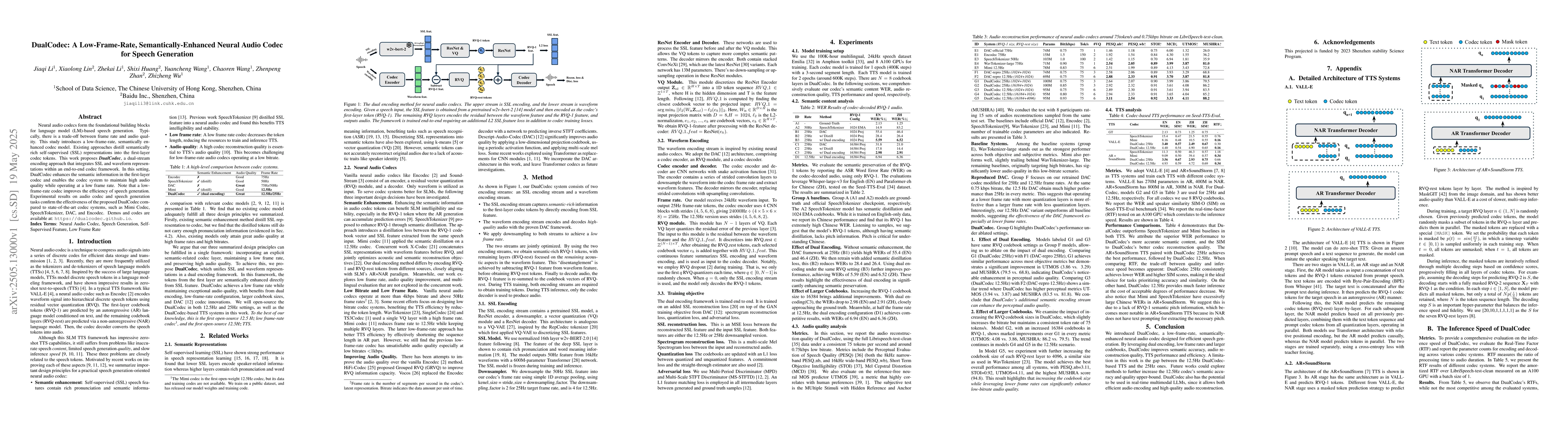 Researchers introduce DualCodec, a low-frame-rate audio codec that enhances semantic information while maintaining high audio quality, outperforming state-of-the-art systems in speech generation tasks.