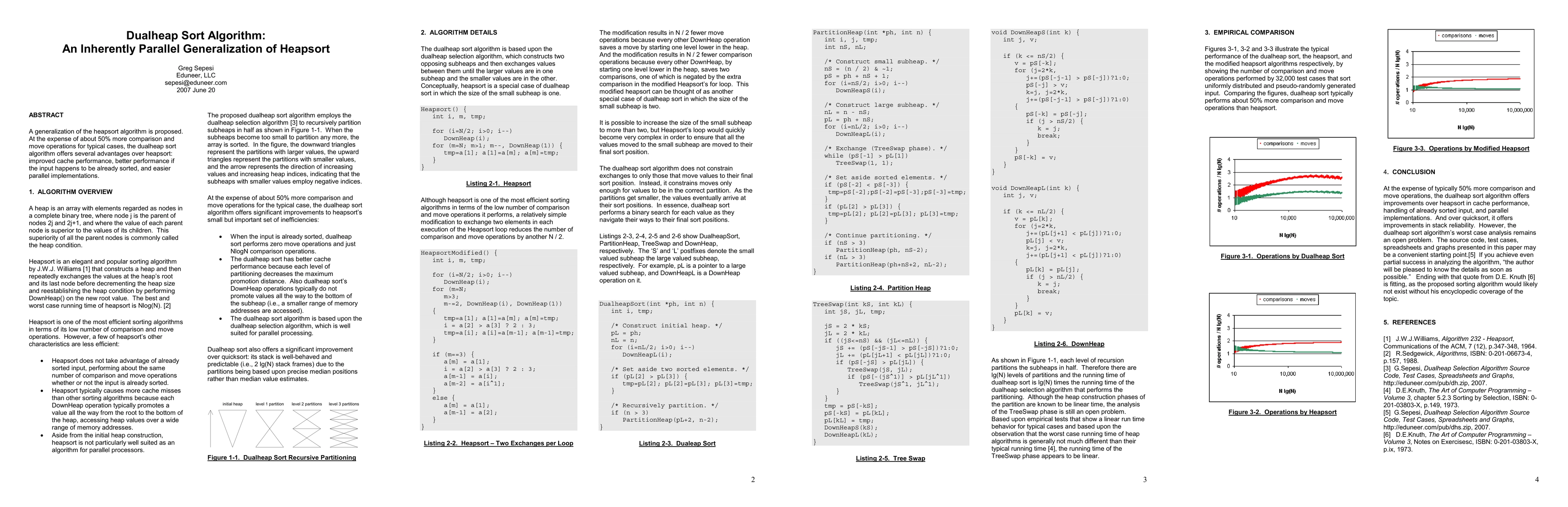 A new sorting algorithm, dualheap sort, offers improved cache performance, faster parallel implementations, and better performance for sorted inputs, but requires 50% more operations than traditional heapsort.