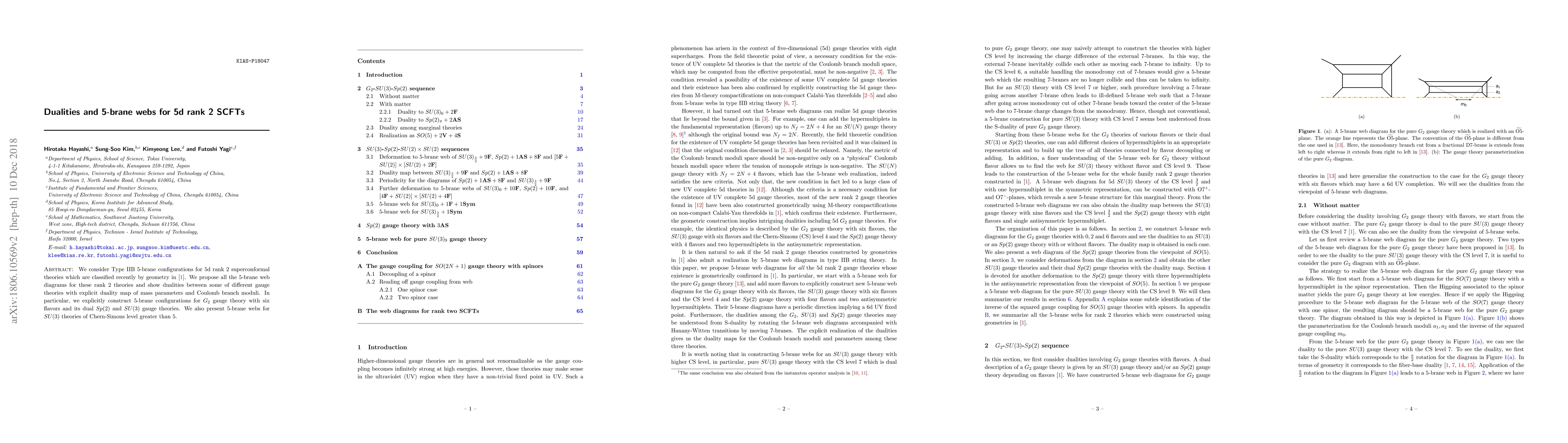 This paper proposes 5-brane web diagrams for 5d rank 2 superconformal field theories (SCFTs), demonstrating dualities between various gauge theories and constructing explicit duality maps for mass parameters and moduli. It specifically focuses on $G_2$ gauge theory with six flavors and its duals $Sp(2)$ and $SU(3)$, as well as $SU(3)$ theories with Chern-Simons levels greater than 5.