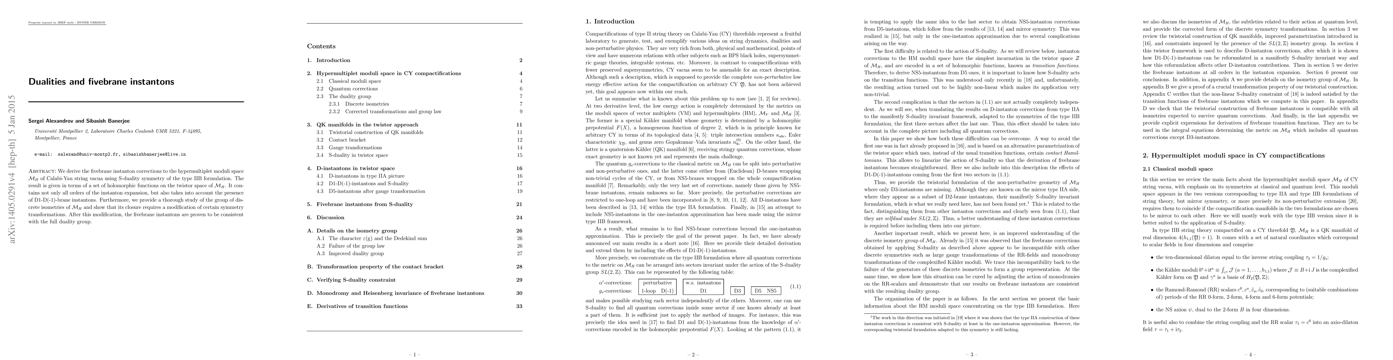 The paper introduces a detailed analysis of fivebrane instantons using S-duality symmetry, providing a twistorial construction of the hypermultiplet moduli space that includes non-perturbative corrections from both fivebranes and D1-D(-1) branes.