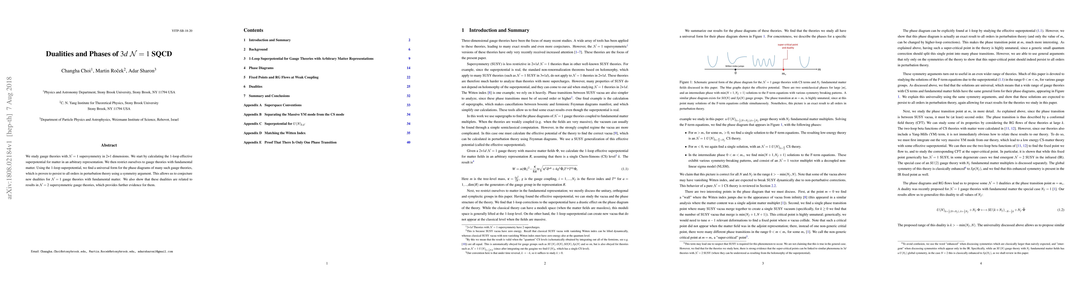We study gauge theories with N=1 supersymmetry in 2+1 dimensions. We start by calculating the 1-loop effective superpotential for matter in an arbitrary representation. We then restrict ourselves to gauge theories with fundamental matter. Using the 1-loop superpotential, we find a universal form for the phase diagrams of many such gauge theories, which is proven to persist to all orders in perturbation theory using a symmetry argument. This allows us to conjecture new dualities for N=1 gauge theories with fundamental matter. We also show that these dualities are related to results in N=2 supersymmetric gauge theories, which provides further evidence for them.