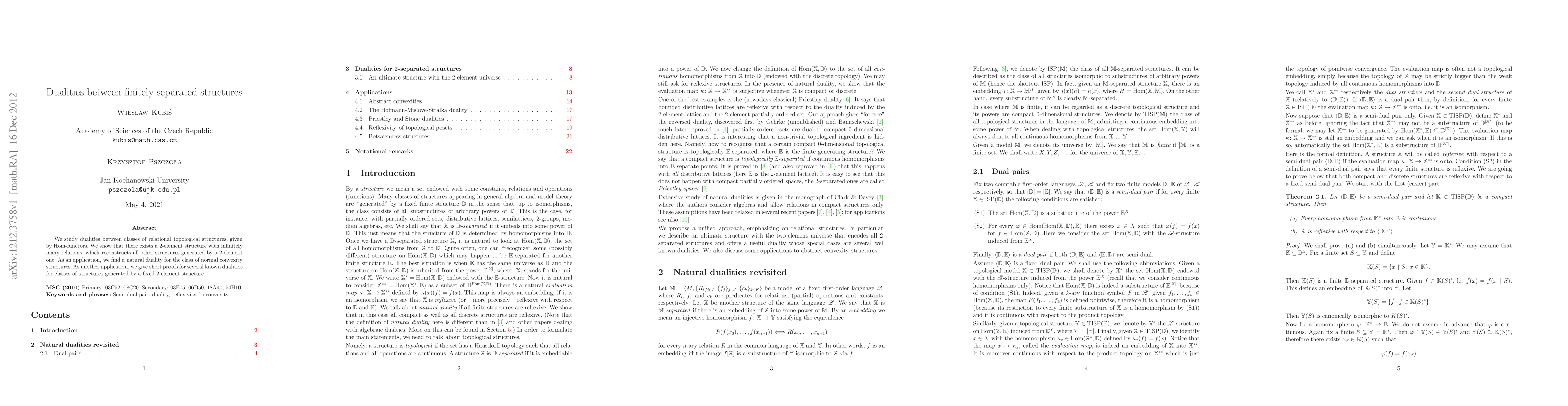 This paper finds that a 2-element structure with infinitely many relations can reconstruct all structures generated by a 2-element one, revealing dualities between classes of relational topological structures.