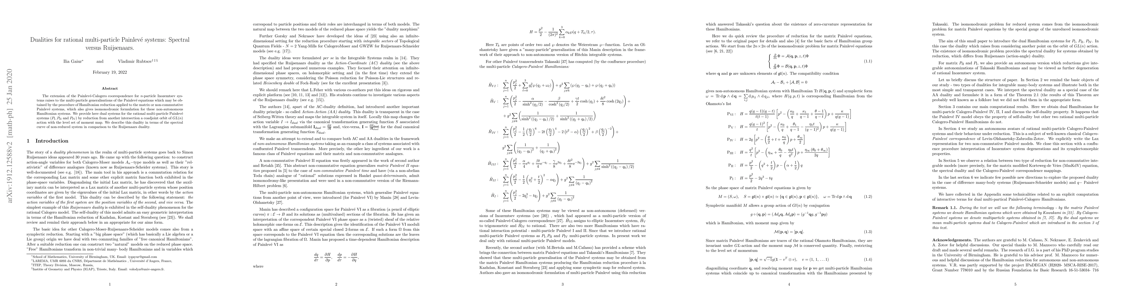 This paper explores dualities for rational multi-particle Painlevé systems, providing dual systems for PI, PII, and PIV through Hamiltonian reduction from coadjoint orbits. It compares these dualities to the Ruijsenaars duality in terms of the spectral curve.