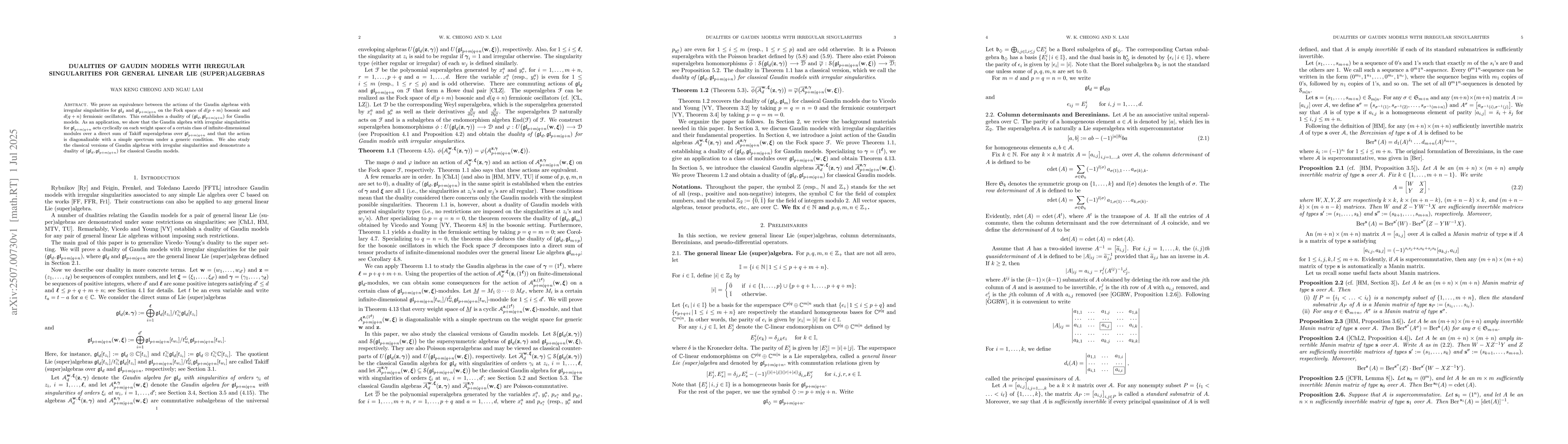 We prove an equivalence between the actions of the Gaudin algebras with irregular singularities for $\mathfrak{gl}_d$ and $\mathfrak{gl}_{p+m|q+n}$ on the Fock space of $d(p+m)$ bosonic and $d(q+n)$ fermionic oscillators. This establishes a duality of $(\mathfrak{gl}_d, \mathfrak{gl}_{p+m|q+n})$ for Gaudin models. As an application, we show that the Gaudin algebra with irregular singularities for $\mathfrak{gl}_{p+m|q+n}$ acts cyclically on each weight space of a certain class of infinite-dimensional modules over a direct sum of Takiff superalgebras over $\mathfrak{gl}_{p+m|q+n}$ and that the action is diagonalizable with a simple spectrum under a generic condition. We also study the classical versions of Gaudin algebras with irregular singularities and demonstrate a duality of $(\mathfrak{gl}_d, \mathfrak{gl}_{p+m|q+n})$ for classical Gaudin models.