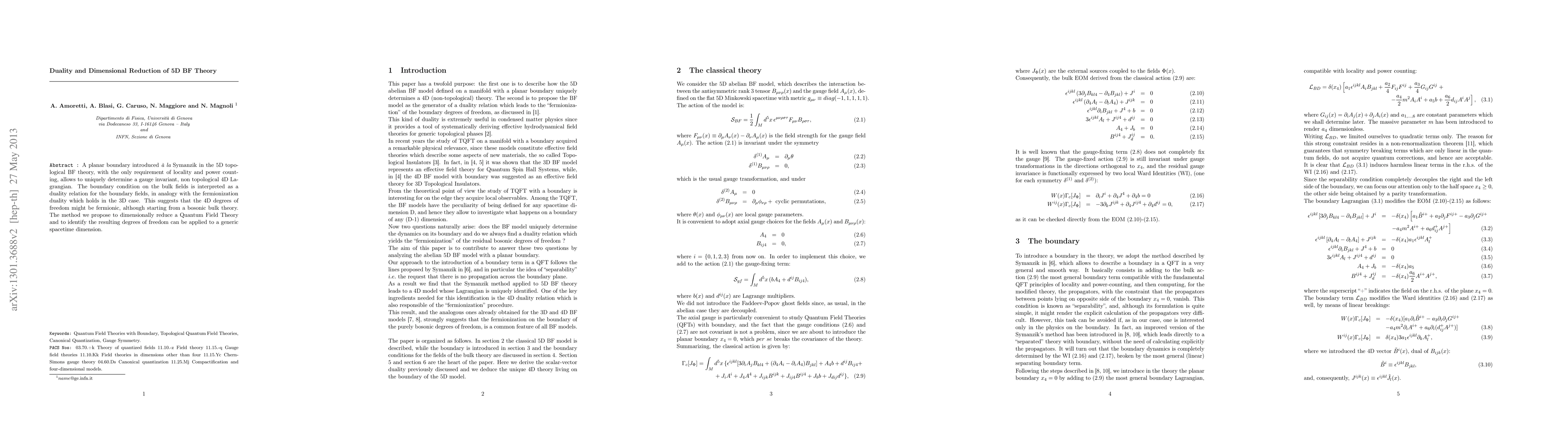 Researchers found a way to reduce 5D topological BF theory to a gauge-invariant, non-topological 4D Lagrangian by introducing a planar boundary condition, which may indicate the 4D degrees of freedom could be fermionic.
