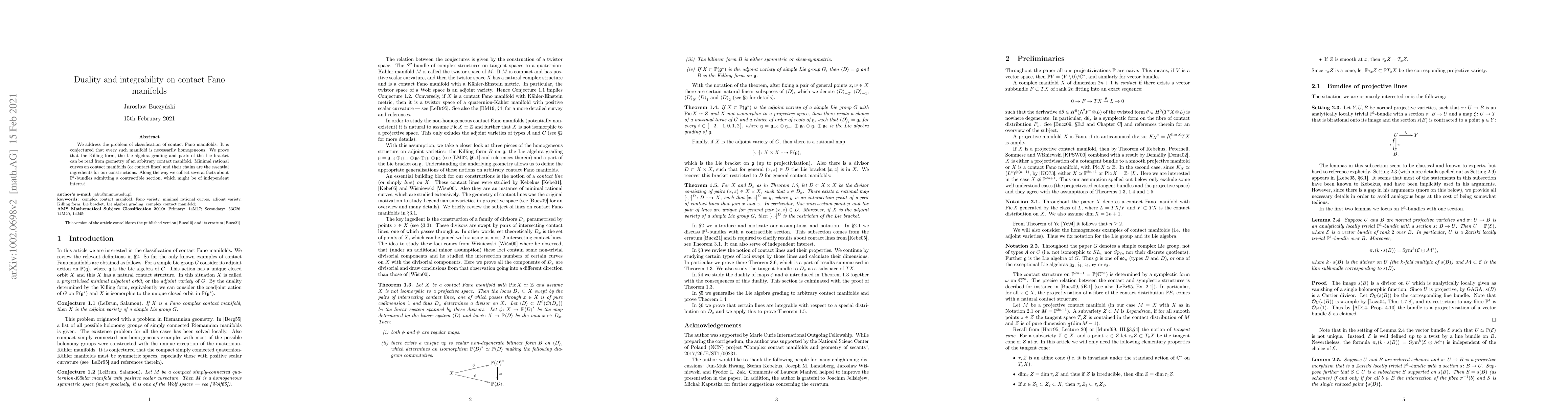 We address the problem of classification of contact Fano manifolds. It is conjectured that every such manifold is necessarily homogeneous. We prove that the Killing form, the Lie algebra grading and parts of the Lie bracket can be read from geometry of an arbitrary contact manifold. Minimal rational curves on contact manifolds (or contact lines) and their chains are the essential ingredients for our constructions. Along the way we collect several facts about bundles of projective lines admitting a contractible section, which might be of independent interest.