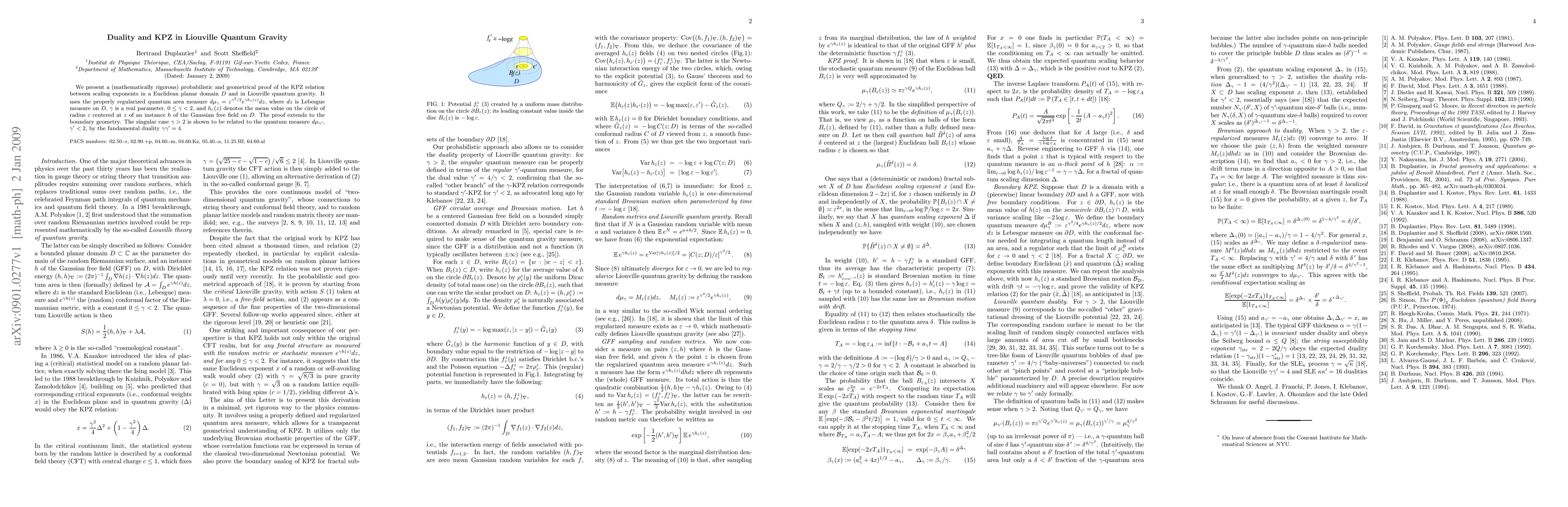 This paper proves the KPZ relation between scaling exponents in 2D geometry and Liouville quantum gravity using a probabilistic and geometrical approach, showing duality between certain parameter values.