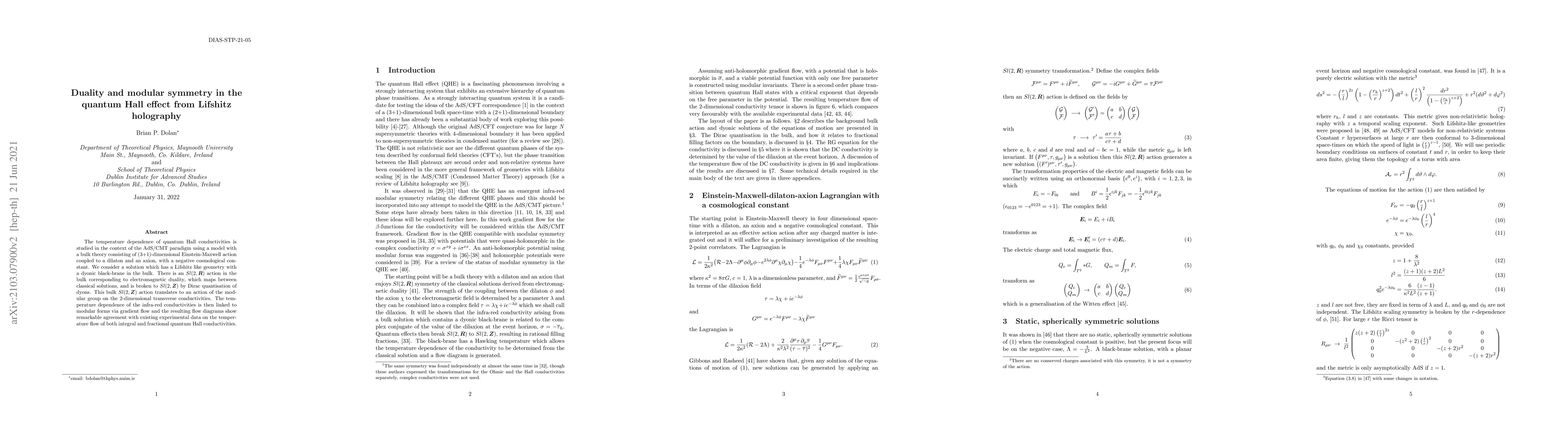 The temperature dependence of quantum Hall conductivities is studied in the context of the AdS/CMT paradigm using a model with a bulk theory consisting of (3+1)-dimensional Einstein-Maxwell action coupled to a dilaton and an axion, with a negative cosmological constant. We consider a solution which has a Lifshitz like geometry with a dyonic black-brane in the bulk. There is an $Sl(2,R)$ action in the bulk corresponding to electromagnetic duality, which maps between classical solutions, and is broken to $Sl(2,Z)$ by Dirac quantisation of dyons. This bulk $Sl(2,Z)$ action translates to an action of the modular group on the 2-dimensional transverse conductivities. The temperature dependence of the infra-red conductivities is then linked to modular forms via gradient flow and the resulting flow diagrams show remarkable agreement with existing experimental data on the temperature flow of both integral and fractional quantum Hall conductivities.