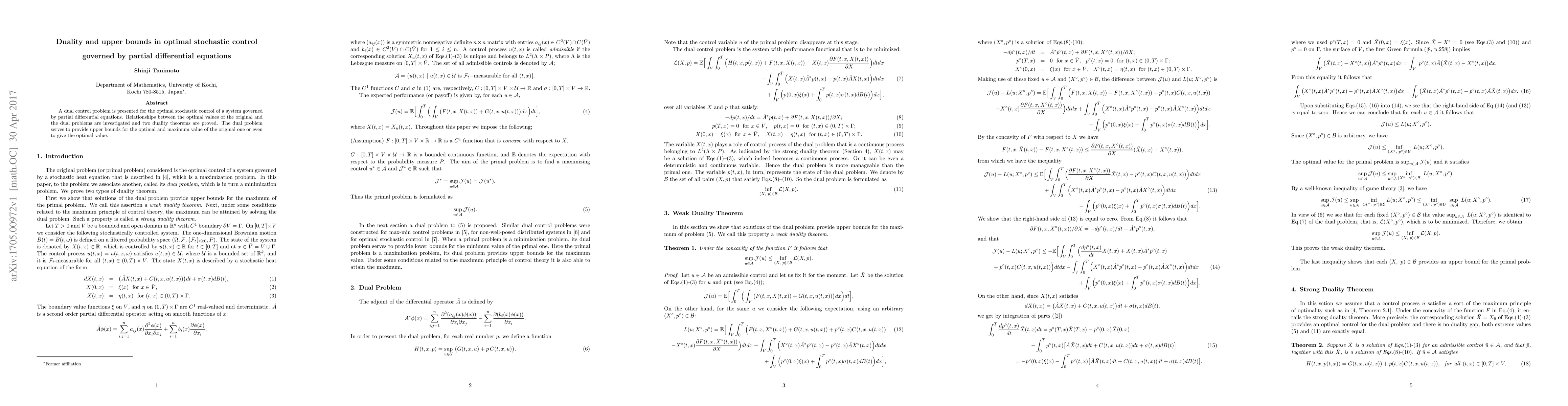This paper explores a dual control problem in optimal stochastic control systems governed by partial differential equations, proving two duality theorems that establish relationships between the original and dual problems. The dual problem is used to derive upper bounds for the optimal value of the original problem, potentially providing the exact optimal value.