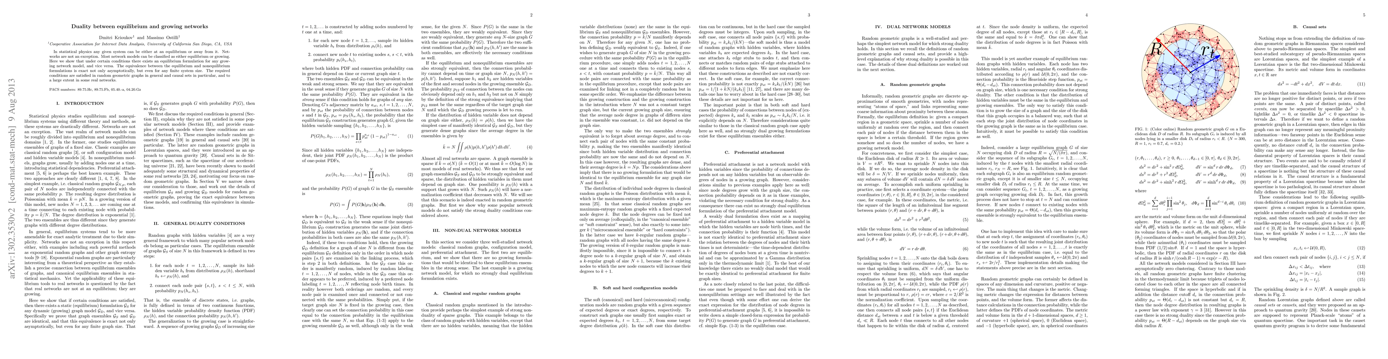 This paper demonstrates a duality between equilibrium and growing network models, showing that any growing network can be reformulated as an equilibrium network under specific conditions, and vice versa. This equivalence holds exactly for any finite system size, applicable to random geometric graphs and causal sets, and partially to some real networks.