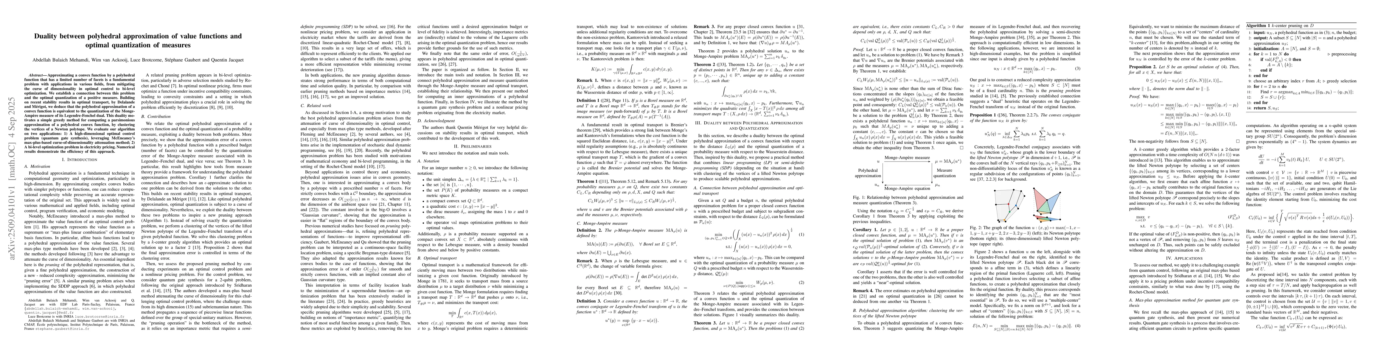 Approximating a convex function by a polyhedral function that has a limited number of facets is a fundamental problem with applications in various fields, from mitigating the curse of dimensionality in optimal control to bi-level optimization. We establish a connection between this problem and the optimal quantization of a positive measure. Building on recent stability results in optimal transport, by Delalande and M\'erigot, we deduce that the polyhedral approximation of a convex function is equivalent to the quantization of the Monge-Amp\`ere measure of its Legendre-Fenchel dual. This duality motivates a simple greedy method for computing a parsimonious approximation of a polyhedral convex function, by clustering the vertices of a Newton polytope. We evaluate our algorithm on two applications: 1) A high-dimensional optimal control problem (quantum gate synthesis), leveraging McEneaney's max-plus-based curse-of-dimensionality attenuation method; 2) A bi-level optimization problem in electricity pricing. Numerical results demonstrate the efficiency of this approach.