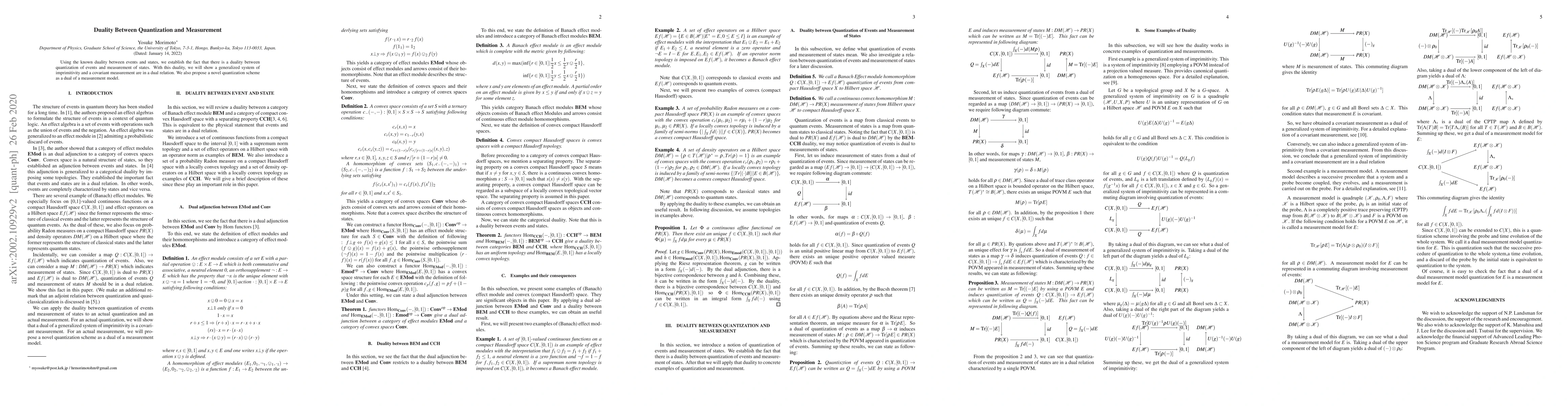 This paper establishes a duality between the quantization of events and the measurement of states, proposing a novel quantization scheme that mirrors a measurement model. It also introduces a generalized system of imprimitivity and demonstrates the dual relationship between covariant measurement and quantization.