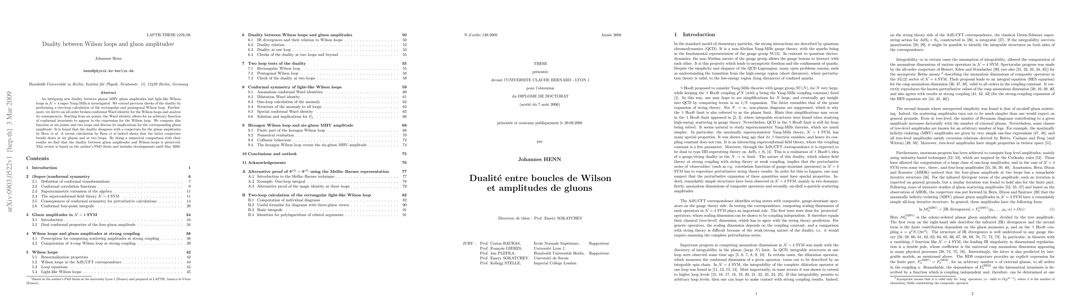 An intriguing new duality between planar MHV gluon amplitudes and light-like Wilson loops in N=4 super Yang-Mills is investigated. We extend previous checks of the duality by performing a two-loop calculation of the rectangular and pentagonal Wilson loop. Furthermore, we derive an all-order broken conformal Ward identity for the Wilson loops and analyse its consequences. Starting from six points, the Ward identity allows for an arbitrary function of conformal invariants to appear in the expression for the Wilson loop. We compute this function at six points and two loops and discuss its implications for the corresponding gluon amplitude. It is found that the duality disagrees with a conjecture for the gluon amplitudes by Bern et al. A recent calculation by Bern et al indeed shows that the latter conjecture breaks down at six gluons and at two loops. By doing a numerical comparison with their results we find that the duality between gluon amplitudes and Wilson loops is preserved. This review is based on the author's PhD thesis and includes developments until May 2008.
