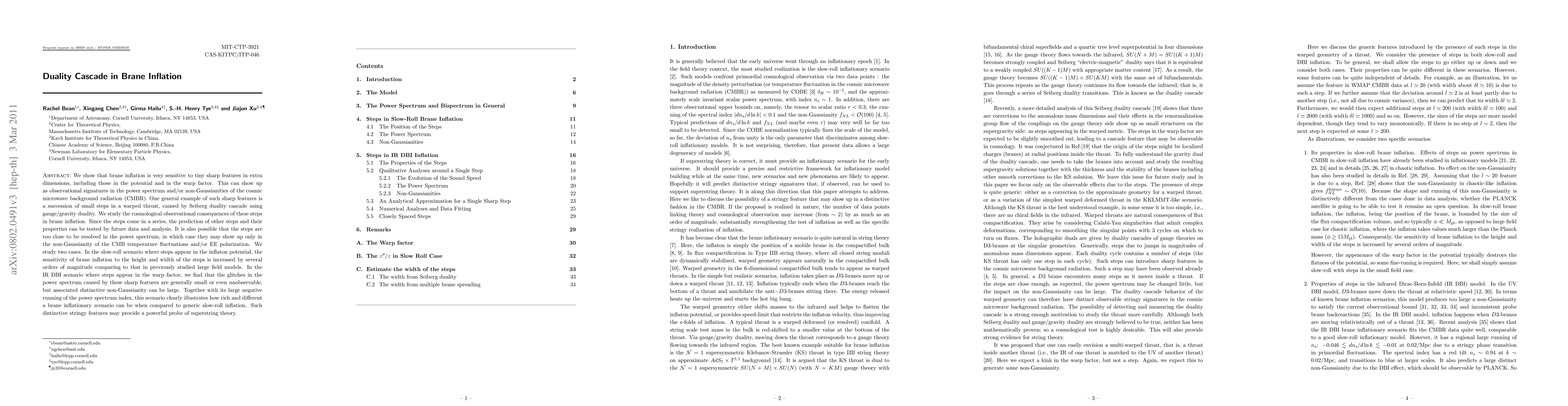 We show that brane inflation is very sensitive to tiny sharp features in extra dimensions, including those in the potential and in the warp factor. This can show up as observational signatures in the power spectrum and/or non-Gaussianities of the cosmic microwave background radiation (CMBR). One general example of such sharp features is a succession of small steps in a warped throat, caused by Seiberg duality cascade using gauge/gravity duality. We study the cosmological observational consequences of these steps in brane inflation. Since the steps come in a series, the prediction of other steps and their properties can be tested by future data and analysis. It is also possible that the steps are too close to be resolved in the power spectrum, in which case they may show up only in the non-Gaussianity of the CMB temperature fluctuations and/or EE polarization. We study two cases. In the slow-roll scenario where steps appear in the inflaton potential, the sensitivity of brane inflation to the height and width of the steps is increased by several orders of magnitude comparing to that in previously studied large field models. In the IR DBI scenario where steps appear in the warp factor, we find that the glitches in the power spectrum caused by these sharp features are generally small or even unobservable, but associated distinctive non-Gaussianity can be large. Together with its large negative running of the power spectrum index, this scenario clearly illustrates how rich and different a brane inflationary scenario can be when compared to generic slow-roll inflation. Such distinctive stringy features may provide a powerful probe of superstring theory.