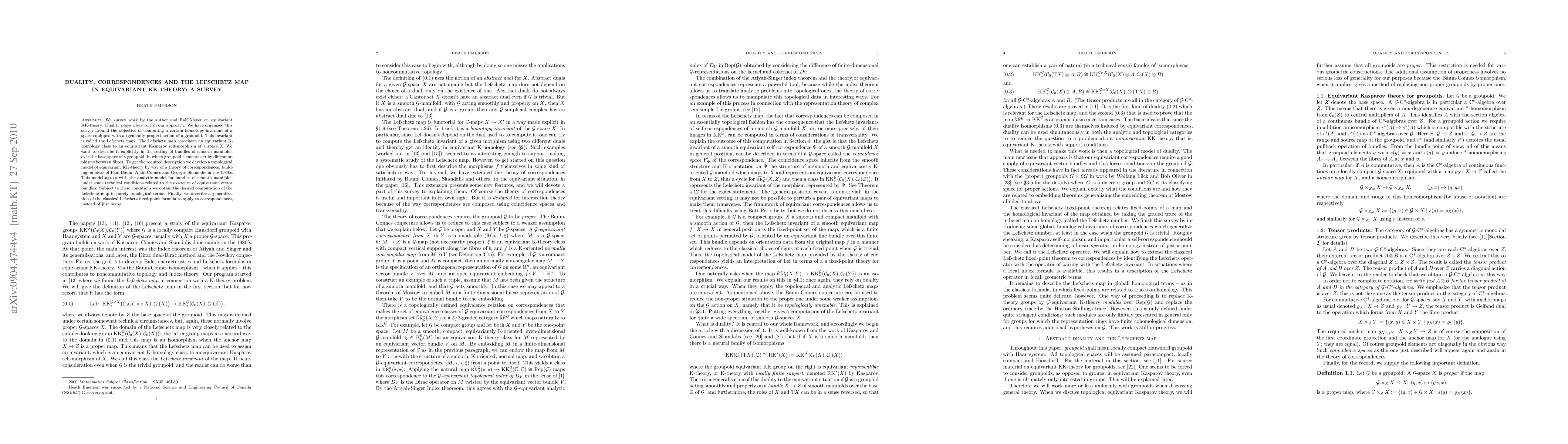 We survey work by the author and Ralf Meyer on equivariant KK-theory. Duality plays a key role in our approach. We organize the survey around the objective of computing a certain homotopy-invariant of a space equipped with a proper action of a group or groupoid called the Lefschetz map. The Lefschetz map associates an equivariant K-homology class to an equivariant Kasparov self-morphism of a space X admitting a dual. We want to describe it explicitly in the setting of bundles of smooth manifolds over the base space of a proper groupoid, in which groupoid elements act by diffeomorphisms between fibres. To get the required description we describe a topological model of equivariant KK-theory by way of a theory of correspondences, building on ideas of Paul Baum, Alain Connes and Georges Skandalis that appeared in the 1980's. This model agrees with the analytic model for bundles of smooth manifolds under some technical conditions related to the existence of equivariant vector bundles. Subject to these conditions we obtain a computation of the Lefschetz map in purely topological terms.