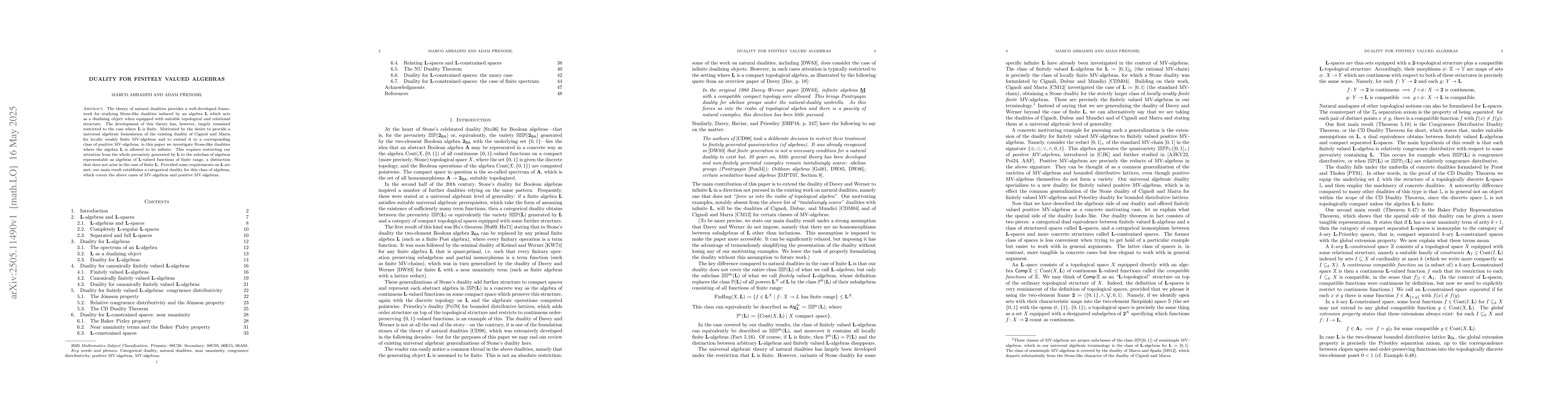 The development of a categorical duality for algebras of finite L-valued functions, generalizing existing dualities for MV-algebras and positive MV-algebras.