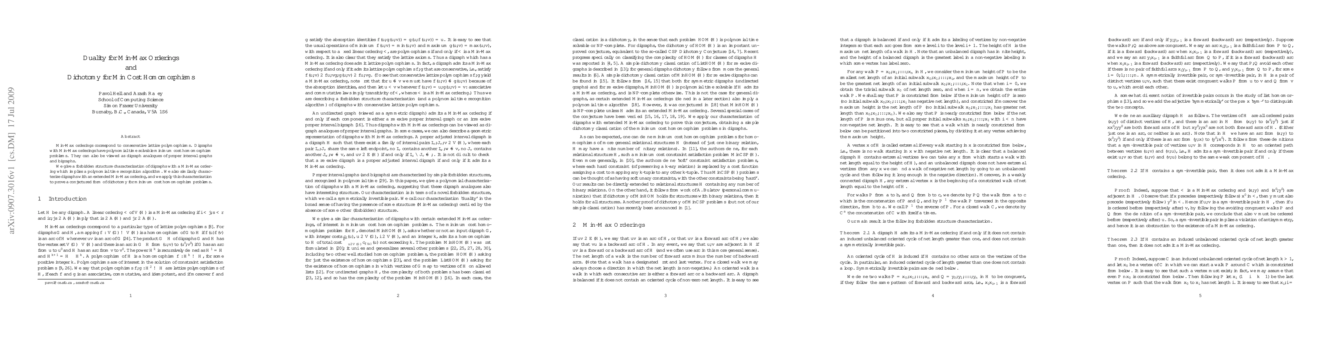 This paper presents a forbidden structure characterization for digraphs with Min-Max orderings, leading to a polynomial time recognition algorithm. It also proves a conjectured dichotomy for minimum cost homomorphism problems in these digraphs.