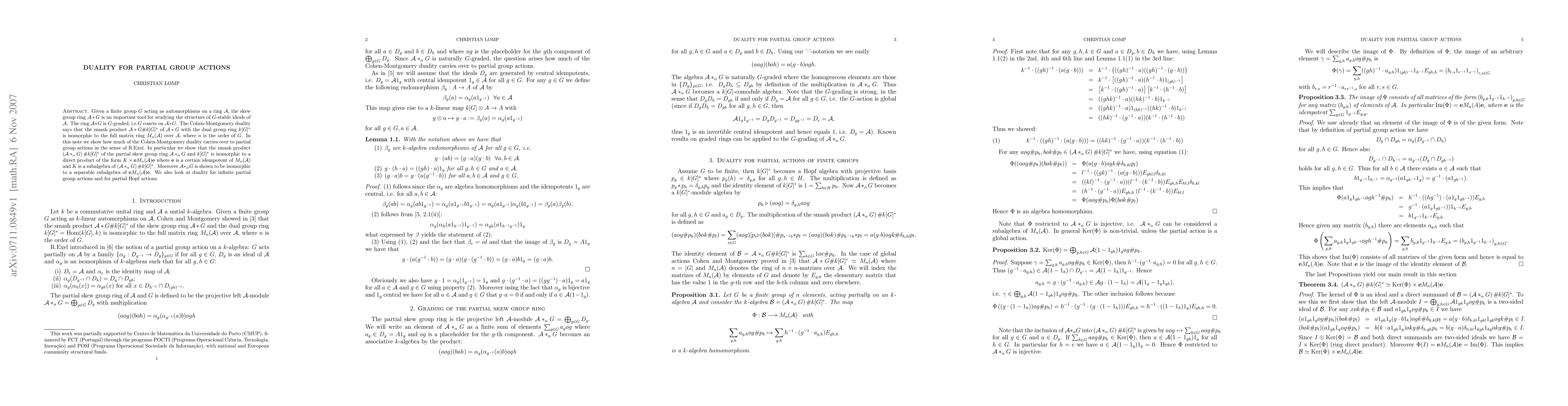 Given a finite group G acting as automorphisms on a ring A, the skew group ring A*G is an important tool for studying the structure of G-stable ideals of A. The ring A*G is G-graded, i.e.G coacts on A*G. The Cohen-Montgomery duality says that the smash product A*G#k[G]^* of A*G with the dual group ring k[G]^* is isomorphic to the full matrix ring M_n(A) over A, where n is the order of G. In this note we show how much of the Cohen-Montgomery duality carries over to partial group actions in the sense of R.Exel. In particular we show that the smash product (A*_\alpha G)#k[G]^* of the partial skew group ring A*_\alpha G and k[G]^* is isomorphic to a direct product of the form K x eM_n(A)e where e is a certain idempotent of M_n(A) and K is a subalgebra of (A *_\alpha G)#k[G]^*. Moreover A*_\alpha G is shown to be isomorphic to a separable subalgebra of eM_n(A)e. We also look at duality for infinite partial group actions and for partial Hopf actions.