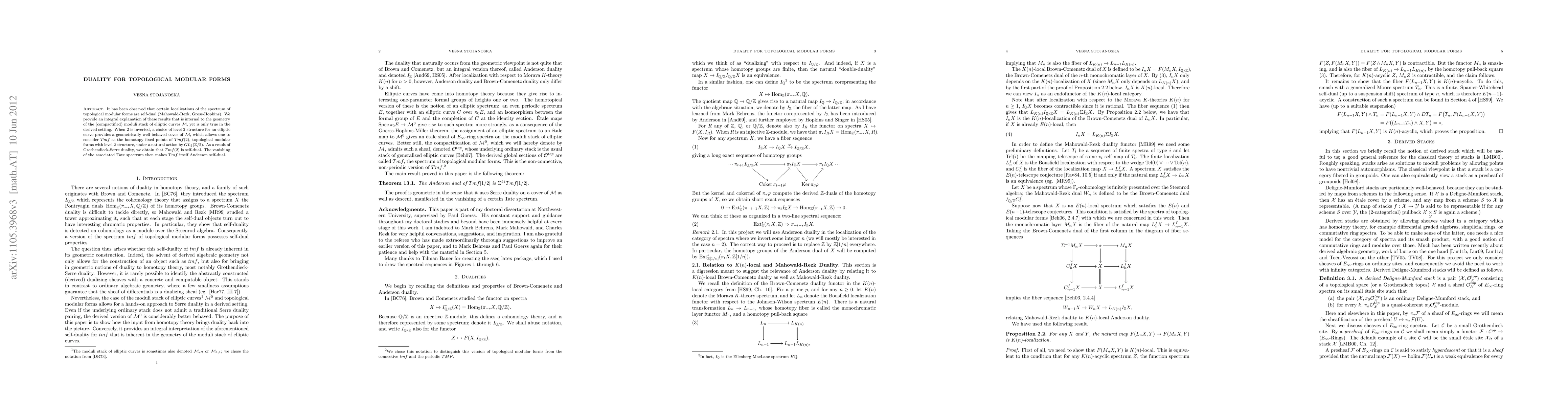 This paper explains the self-duality observed in localizations of topological modular forms through the geometry of the moduli stack of elliptic curves, showing that when 2 is inverted, $Tmf$ is the homotopy fixed points of $Tmf(2)$ under $GL_2(\Z/2)$, leading to $Tmf$ being Anderson self-dual due to Grothendieck-Serre duality and the vanishing of the associated Tate spectrum.