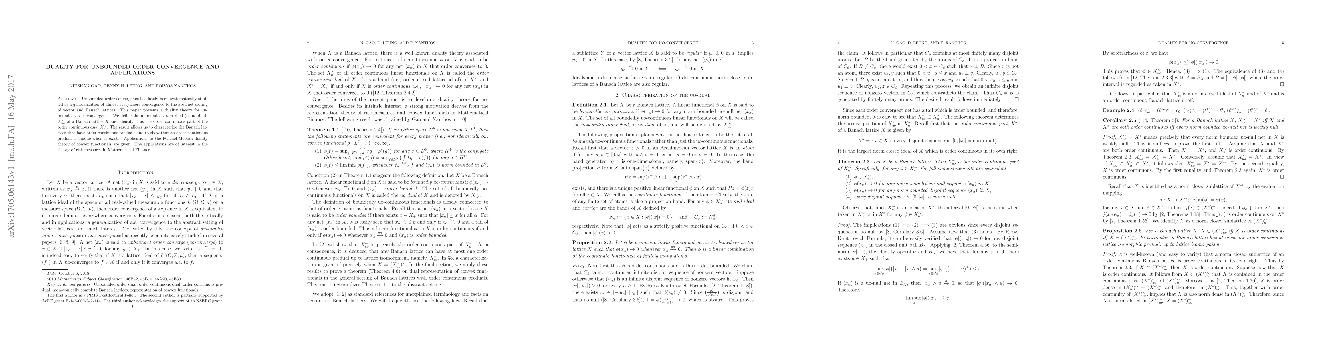 This paper develops a duality theory for unbounded order convergence in Banach lattices, defining the unbounded order dual and identifying it as the order continuous part of the order continuous dual. It characterizes Banach lattices with order continuous preduals and proves their uniqueness when they exist, with applications to Fenchel-Moreau duality in risk measures for Mathematical Finance.