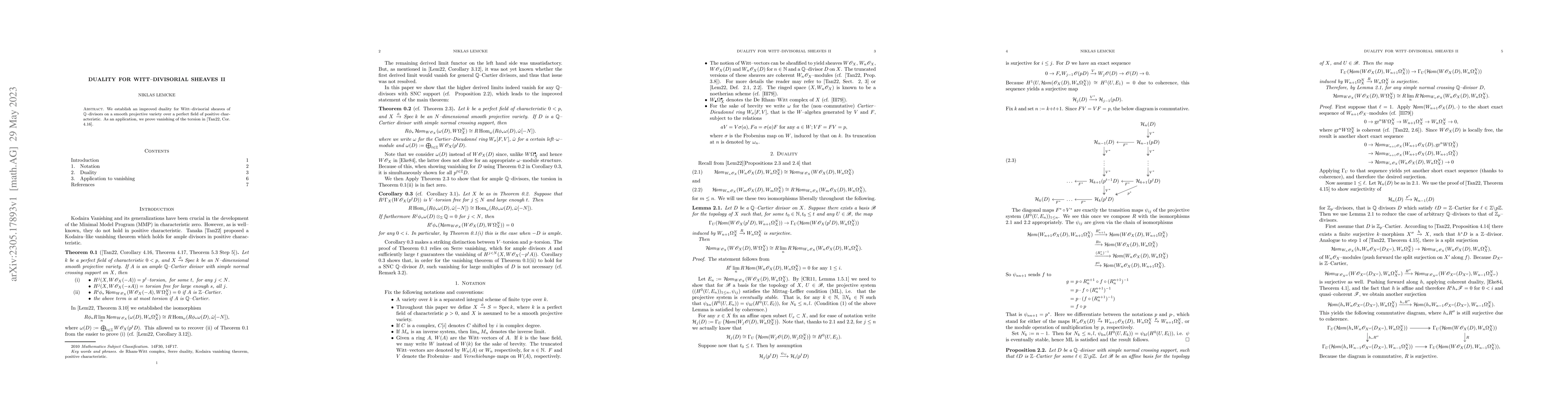 This paper establishes an enhanced duality for Witt-divisorial sheaves on smooth projective varieties over fields of positive characteristic, and applies this to demonstrate the vanishing of torsion in a specific result from a referenced work.