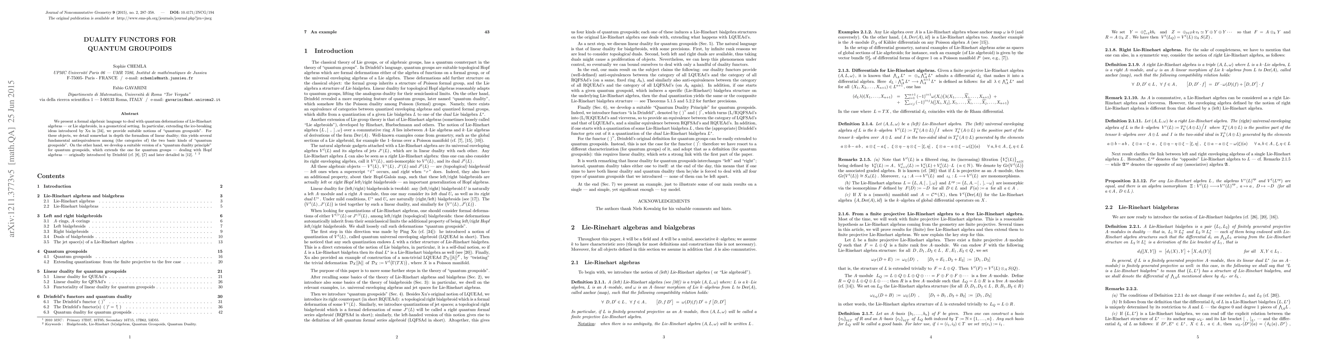 We present a formal algebraic language to deal with quantum deformations of Lie-Rinehart algebras - or Lie algebroids, in a geometrical setting. In particular, extending the ice-breaking ideas introduced by Xu in [Ping Xu, "Quantum groupoids", Comm. Math. Phys. 216 (2001), 539-581], we provide suitable notions of "quantum groupoids". For these objects, we detail somewhat in depth the formalism of linear duality; this yields several fundamental antiequivalences among (the categories of) the two basic kinds of "quantum groupoids". On the other hand, we develop a suitable version of a "quantum duality principle" for quantum groupoids, which extends the one for quantum groups - dealing with Hopf algebras - originally introduced by Drinfeld (cf. [V. G. Drinfeld, "Quantum groups", Proc. ICM (Berkeley, 1986), 1987, pp. 798-820], sec. 7) and later detailed in [F. Gavarini, "The quantum duality principle", Annales de l'Institut Fourier 53 (2002), 809-834].
